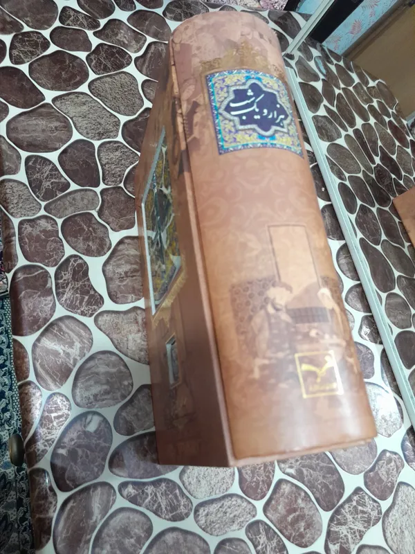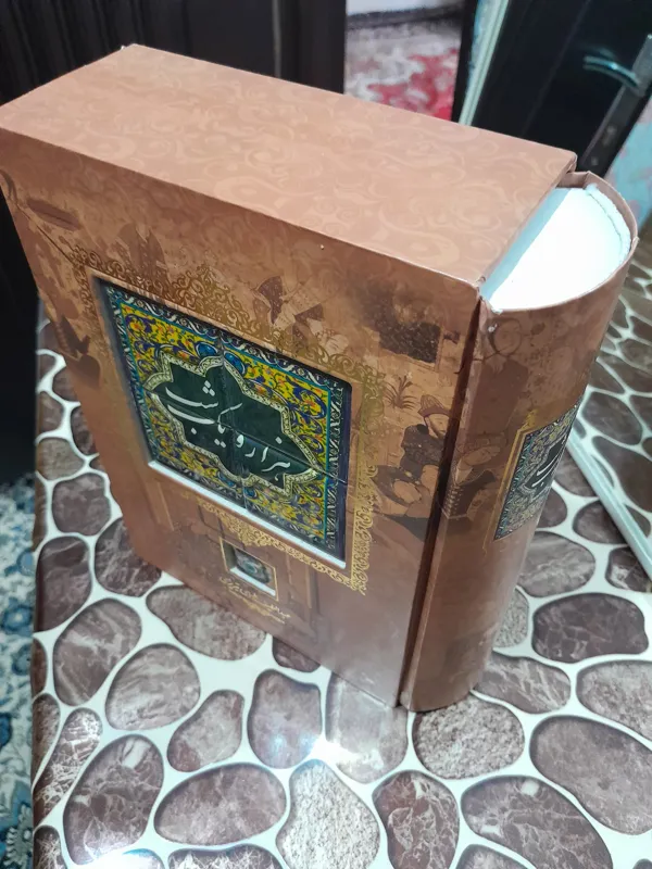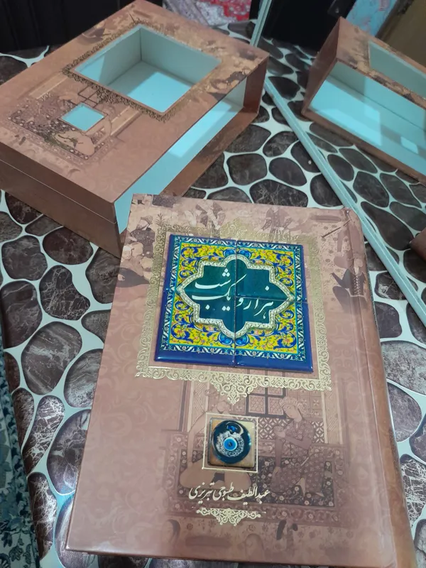 قابدار با طراحی جلد کاشی کاری زیبا ، کلکسیونی و خاص ، کتاب میشه گفت آکبنده ، فقط چند ورق زده شده ، خاص و ناب