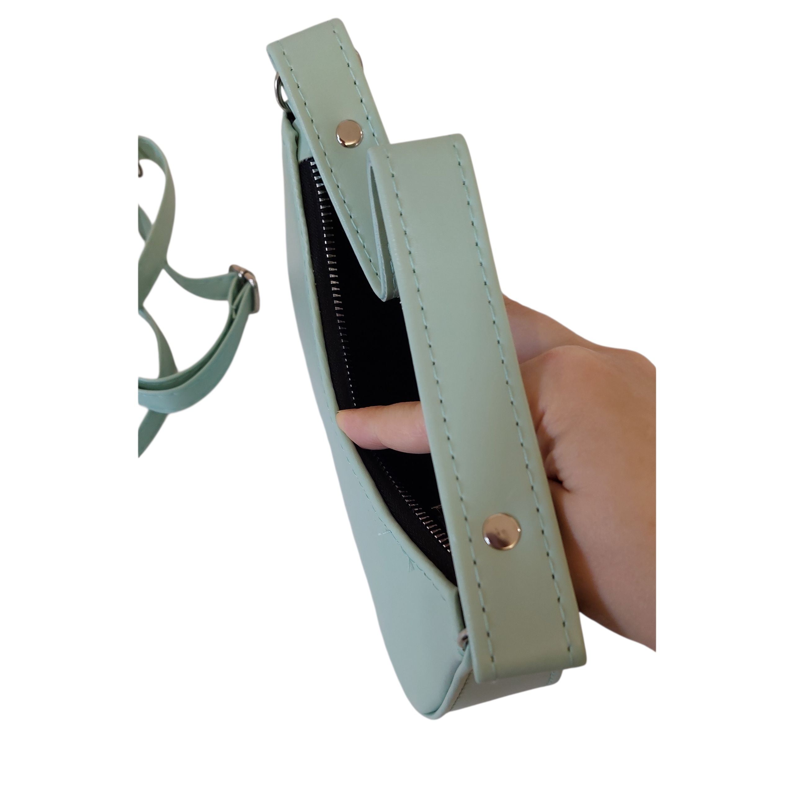 کیف چرم با کیفیت به رنگ  سبز آدامسی دارای دو بند. بند کوتاه برای استایل مجلسی و بند بلند برای استایل روزمره