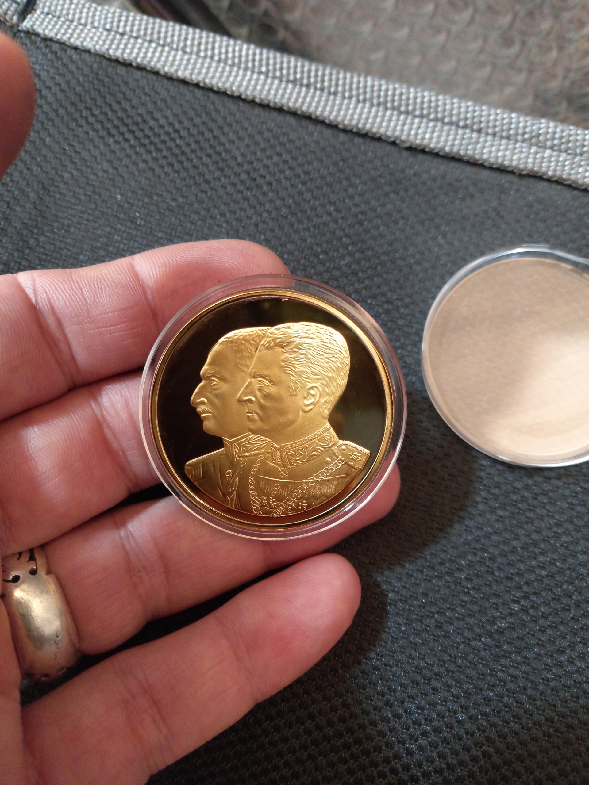 سکه کلکسیونی به مناسبت پنجاهمین سال شاهنشاهی ایران جنس برنز باطراحی بینظیر ودرجه1 به همراه قاب محافظ هدیه ماندگار
