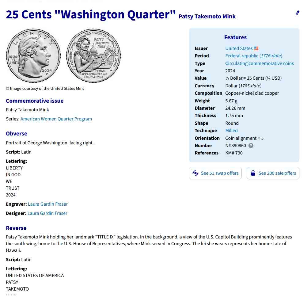 سکه یادبودی کوارتر امریکا 2024 (بسیار کمیاب) D