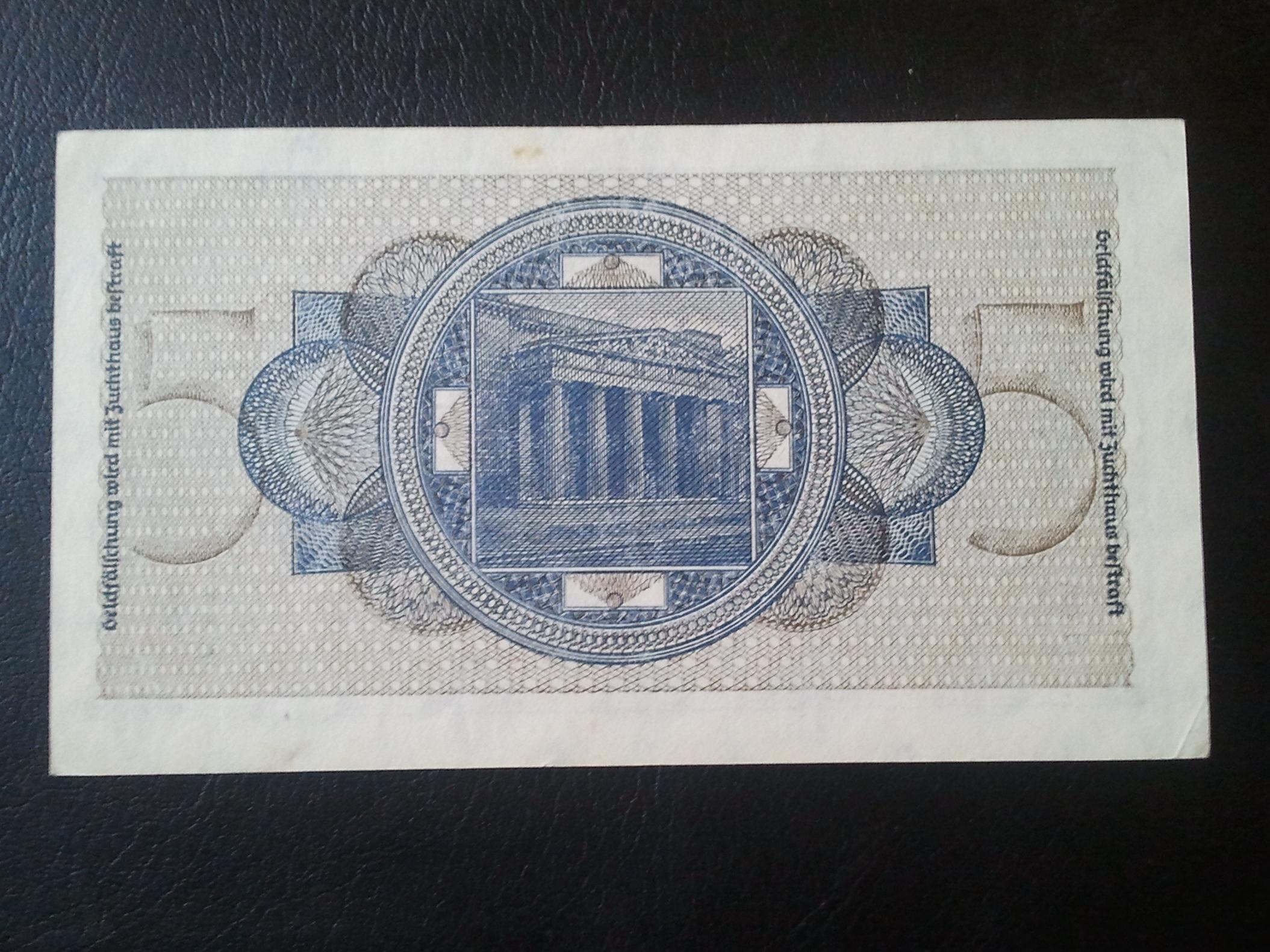 اسکناس  تک  5 رایشمارک آلمان  1940