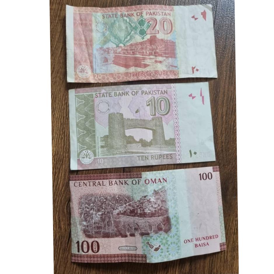 3 اسکناس خارجی(2 تا پاکستان و 100 بیسه عمان)