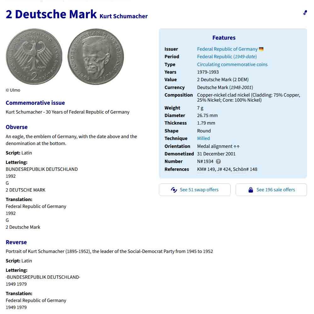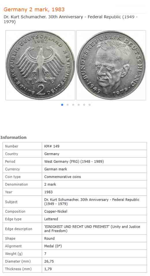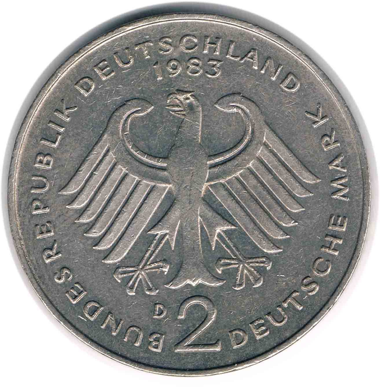 سکه یادبودی 2 مارک آلمان 1983 شوماخر (کمیاب) D