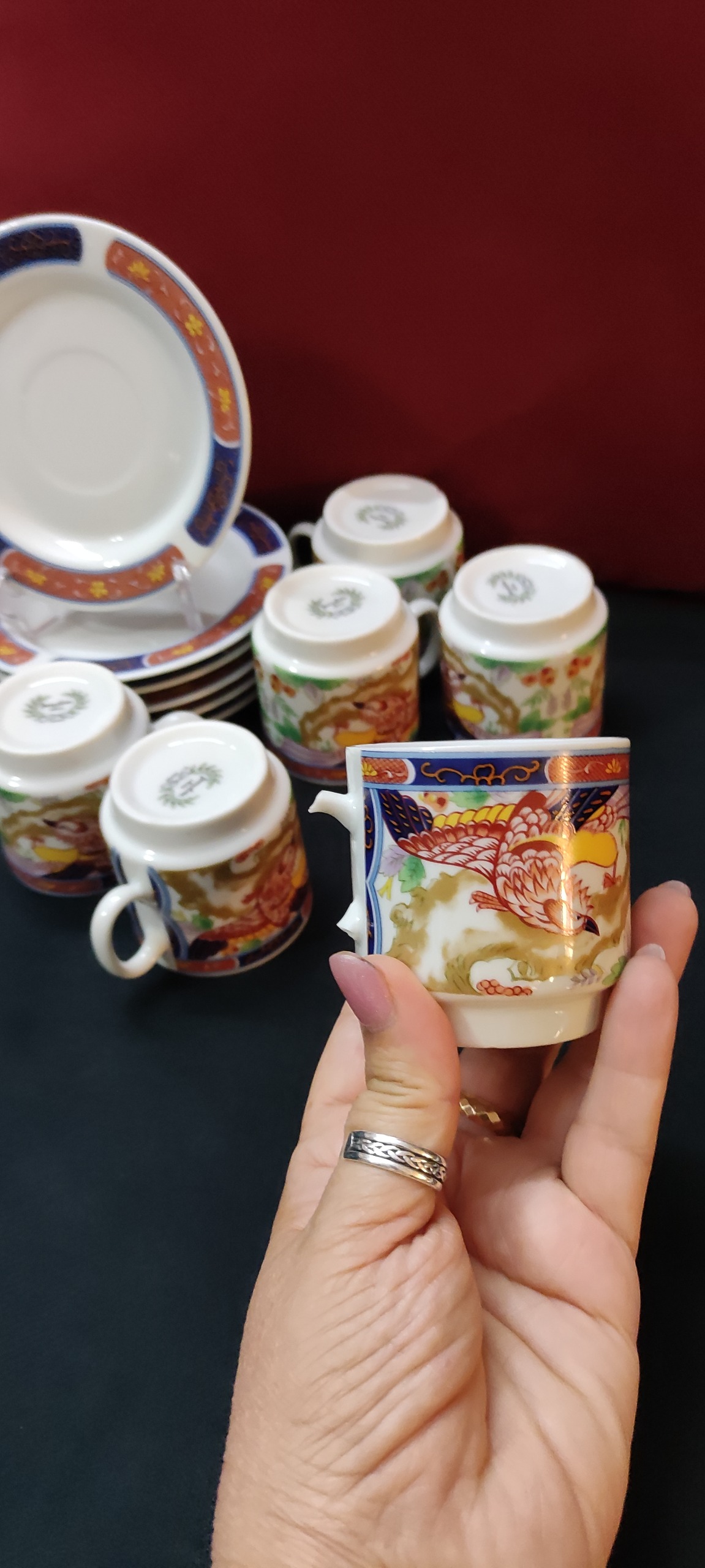 تی ست فنجان و نعلبکی قهوه خوری سیمرغی ژاپن اصل قدیم