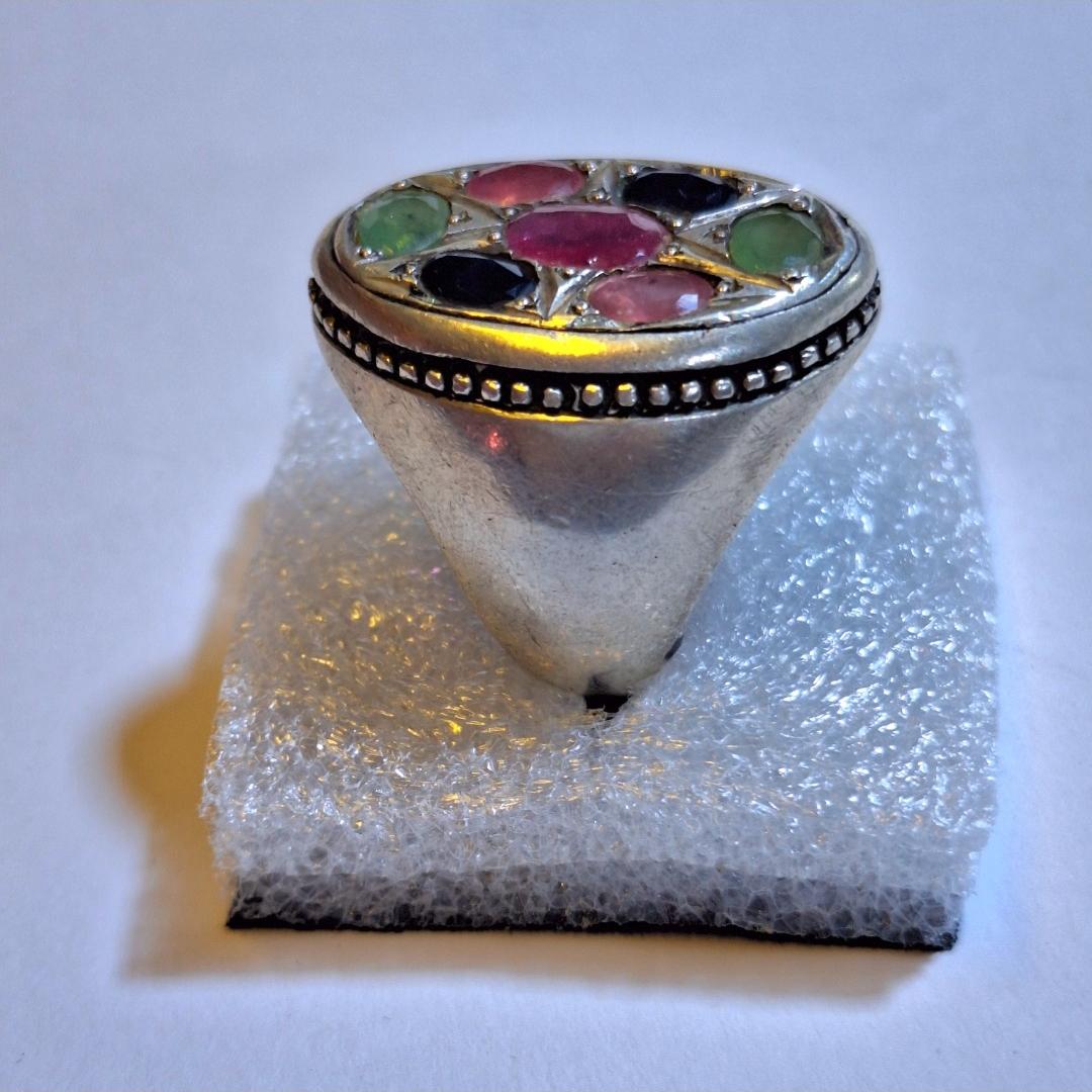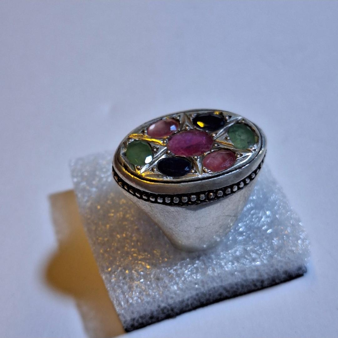 انگشتر نقره مولتی کالر زمرد و یاقوت و