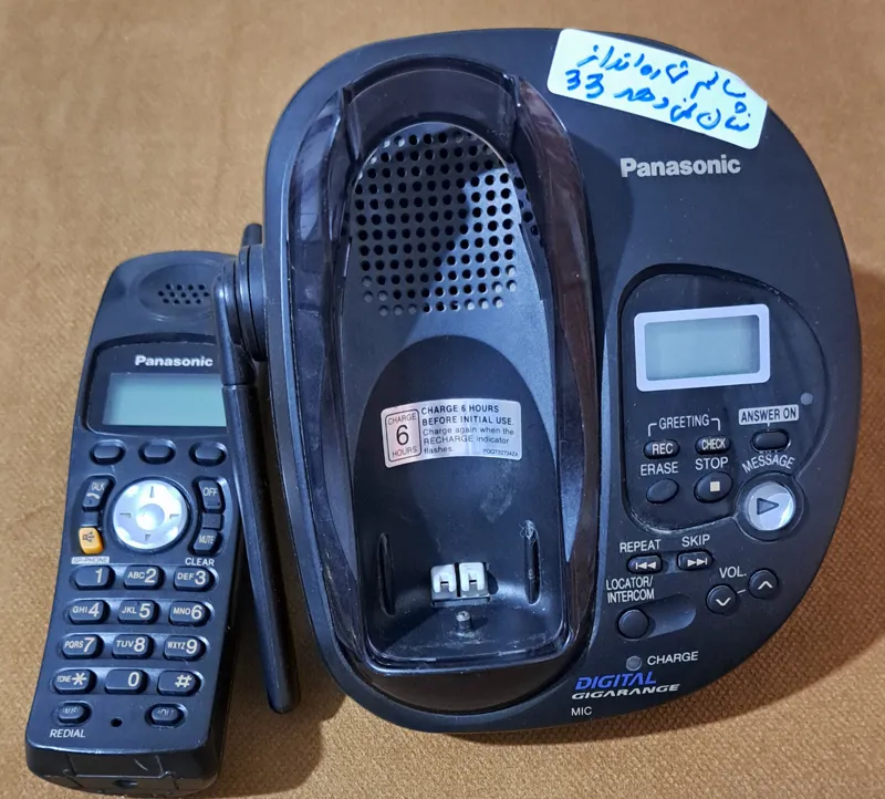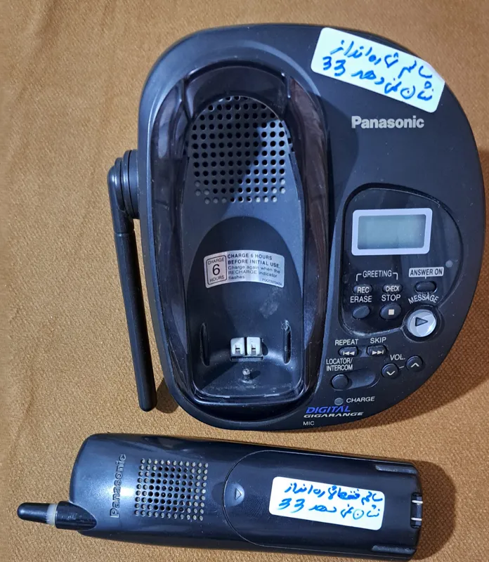 تلفن بیسیم پاناسونیک دارای پیامگیر صوتی وارتباط داخلی بین بیس وگوشی دارای آیفون پخش صدا روی گوشی از نظر کارکردسالم فقط شماره نشان نمی دهد شاید مشکل از فلت باشد بدون باتری وآدابتور ارسال میشود ظاهر هم طبق تصویرهای ارسال شده ارسال رایگان، قیمت هم ارزان