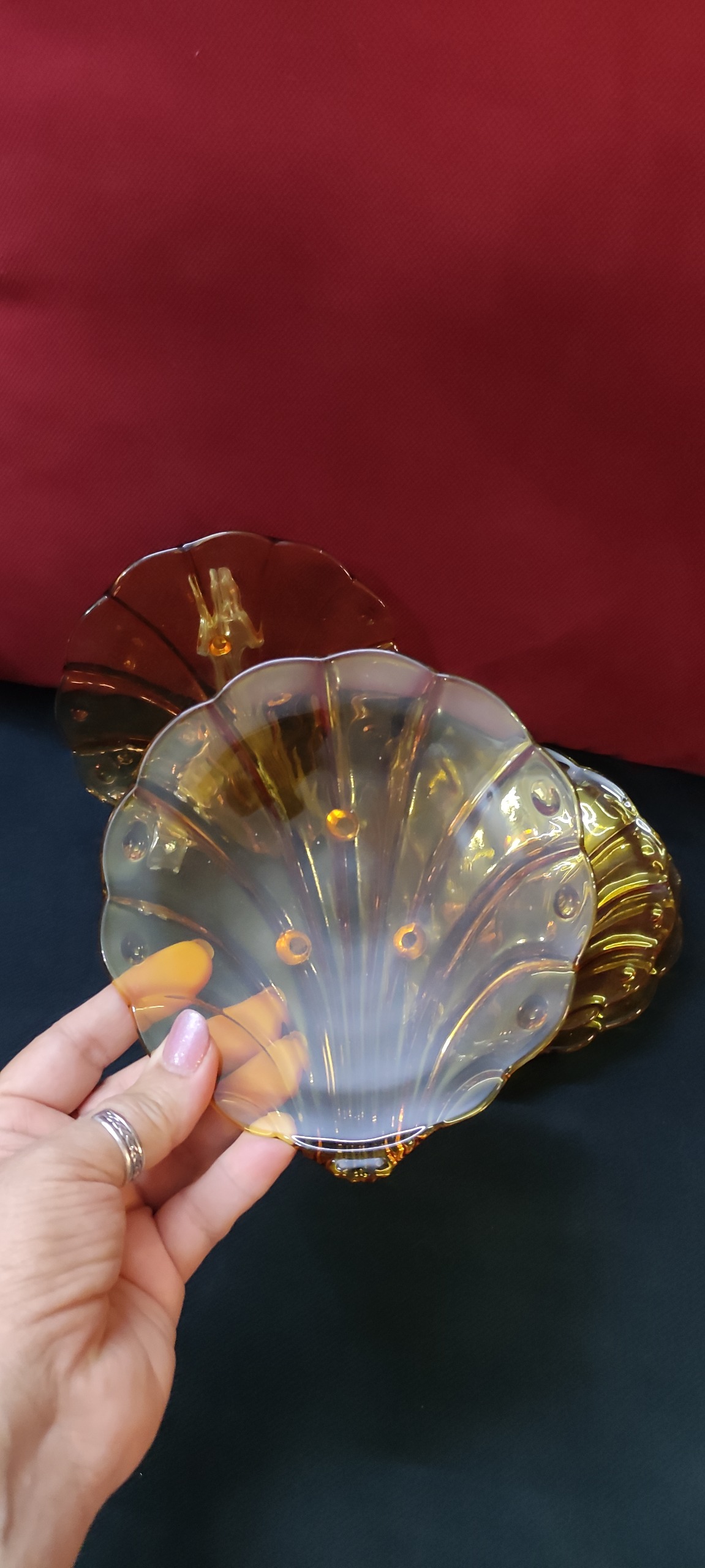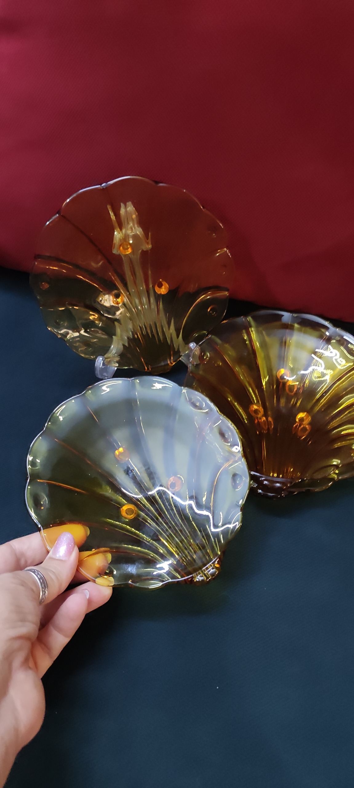 4 عدد پیش دستی کریستال عسلی چک قدیمی طرح صدف کمیاب