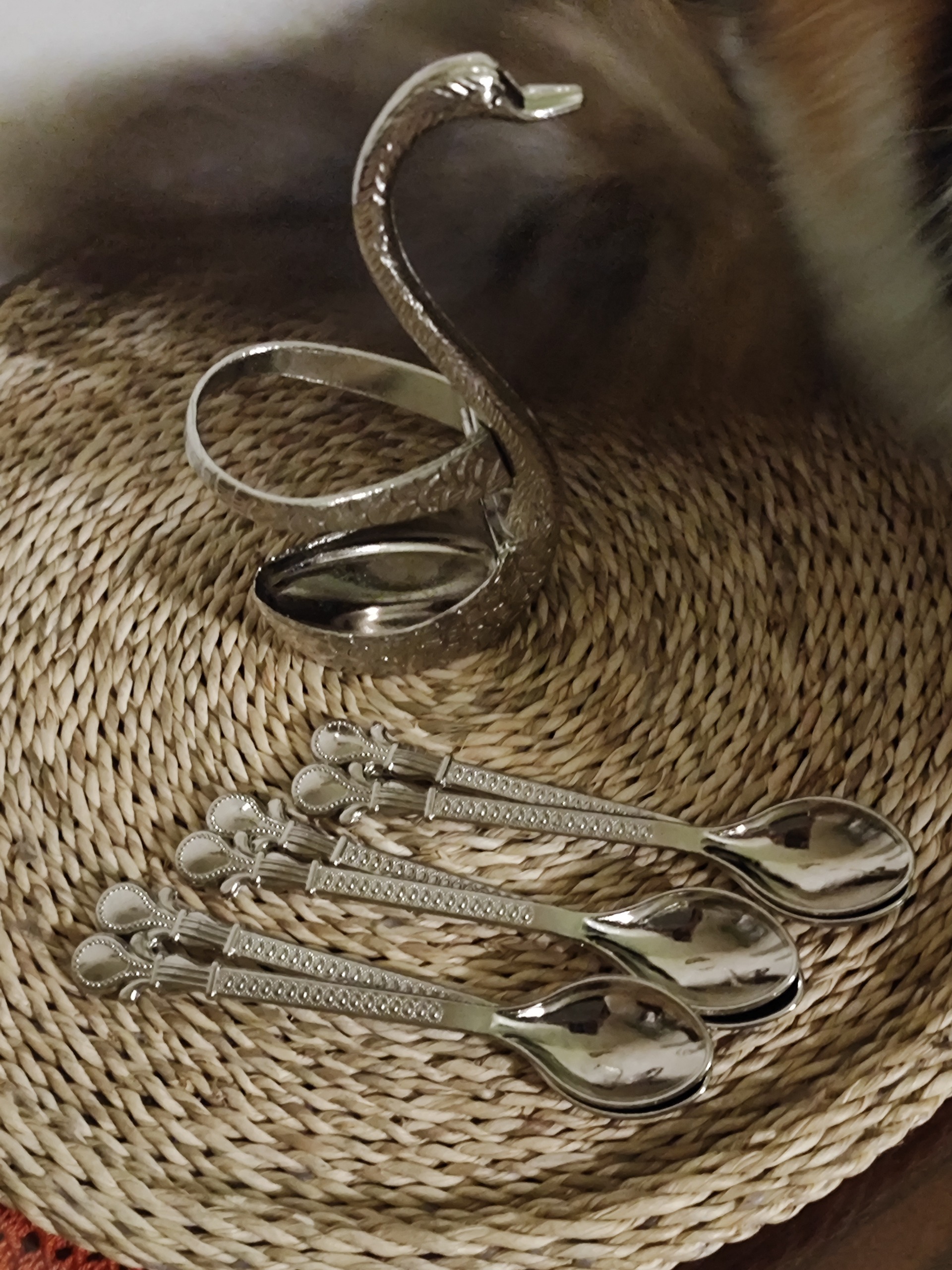 جاقاشقی طرح قو همراه با شش عدد قاشق چایخوری