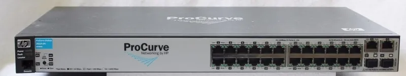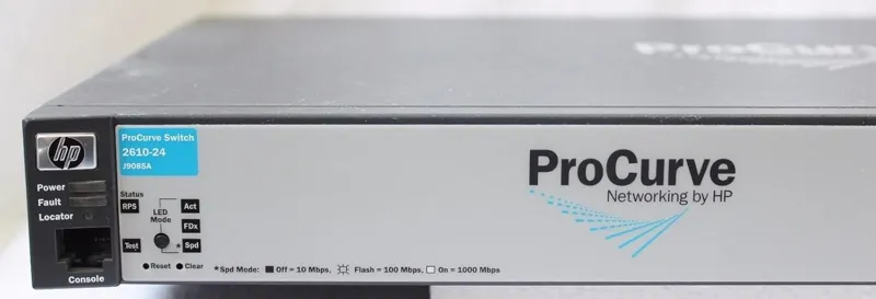 HP 2610-24, ProCurve. Switch layer: L3, Switch type: Managed. Copper ethernet cabling technology: 100BASE-TX. Networking standards: IEEE 802.3ab, IEEE 802.3u. MAC address table: 8000 entries, Supported data transfer rates: 10/100 Mbps, Switching capacity: 12.8 Gbit/s. Width: 442 mm, Depth: 236 mm, Height: 43 mm