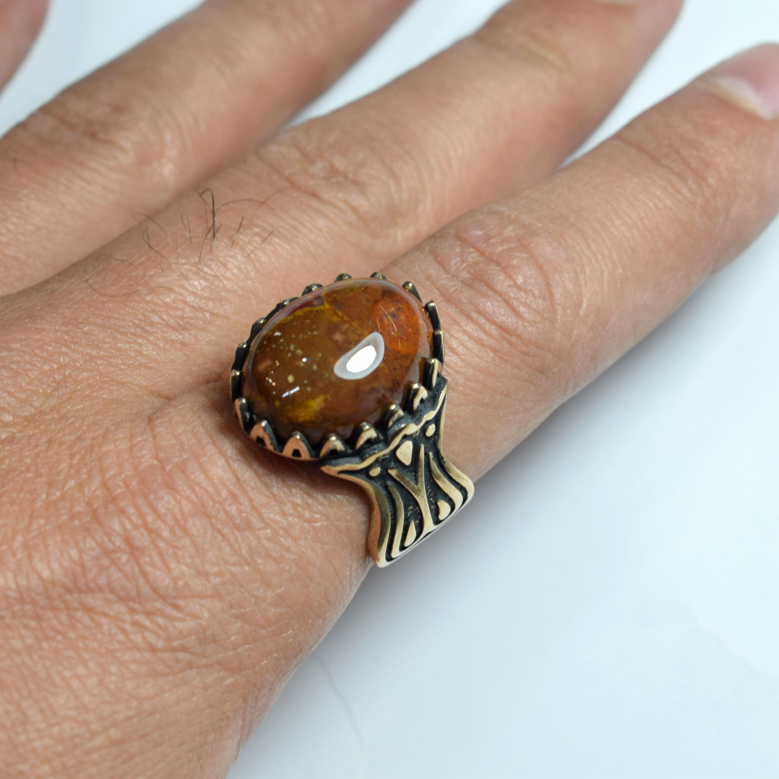 انگشتر جاسپر قهوه ای معدنی طلاروس