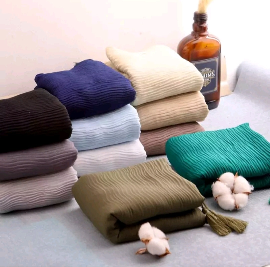 شال نخی پلیسه ریز ساده منگوله دار سبز