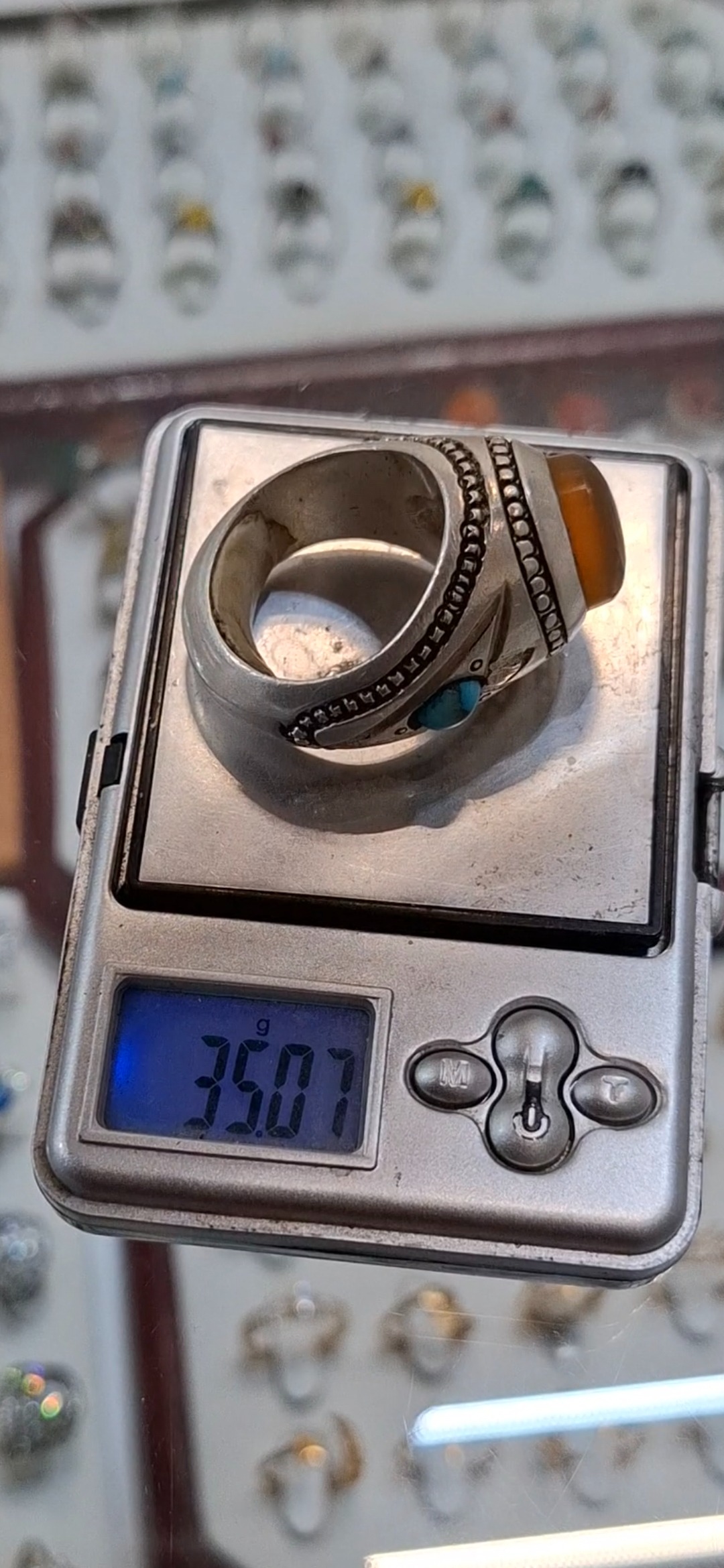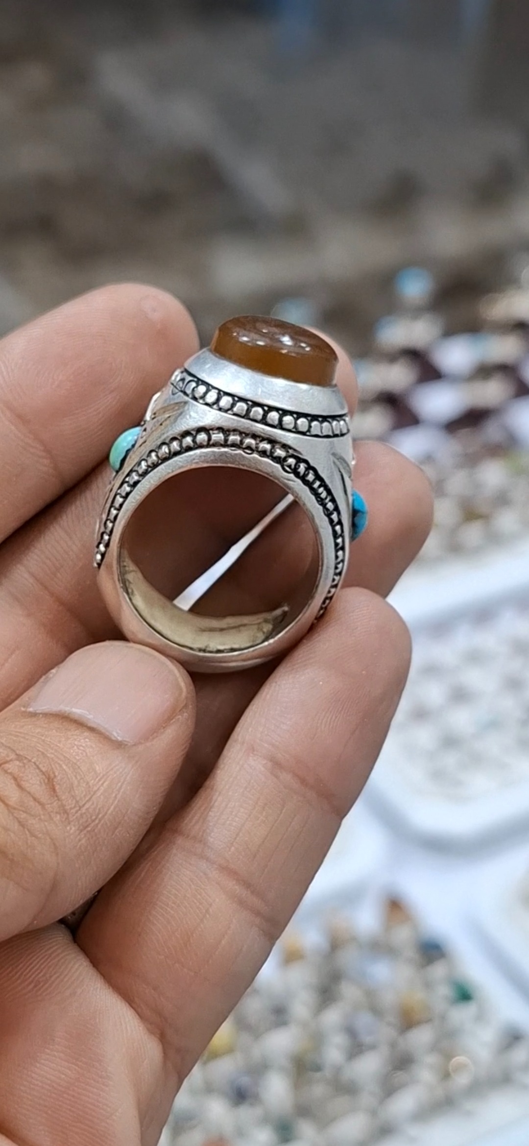انگشتر جزع طبیعی با مخراج های فیروزه نیشابوری