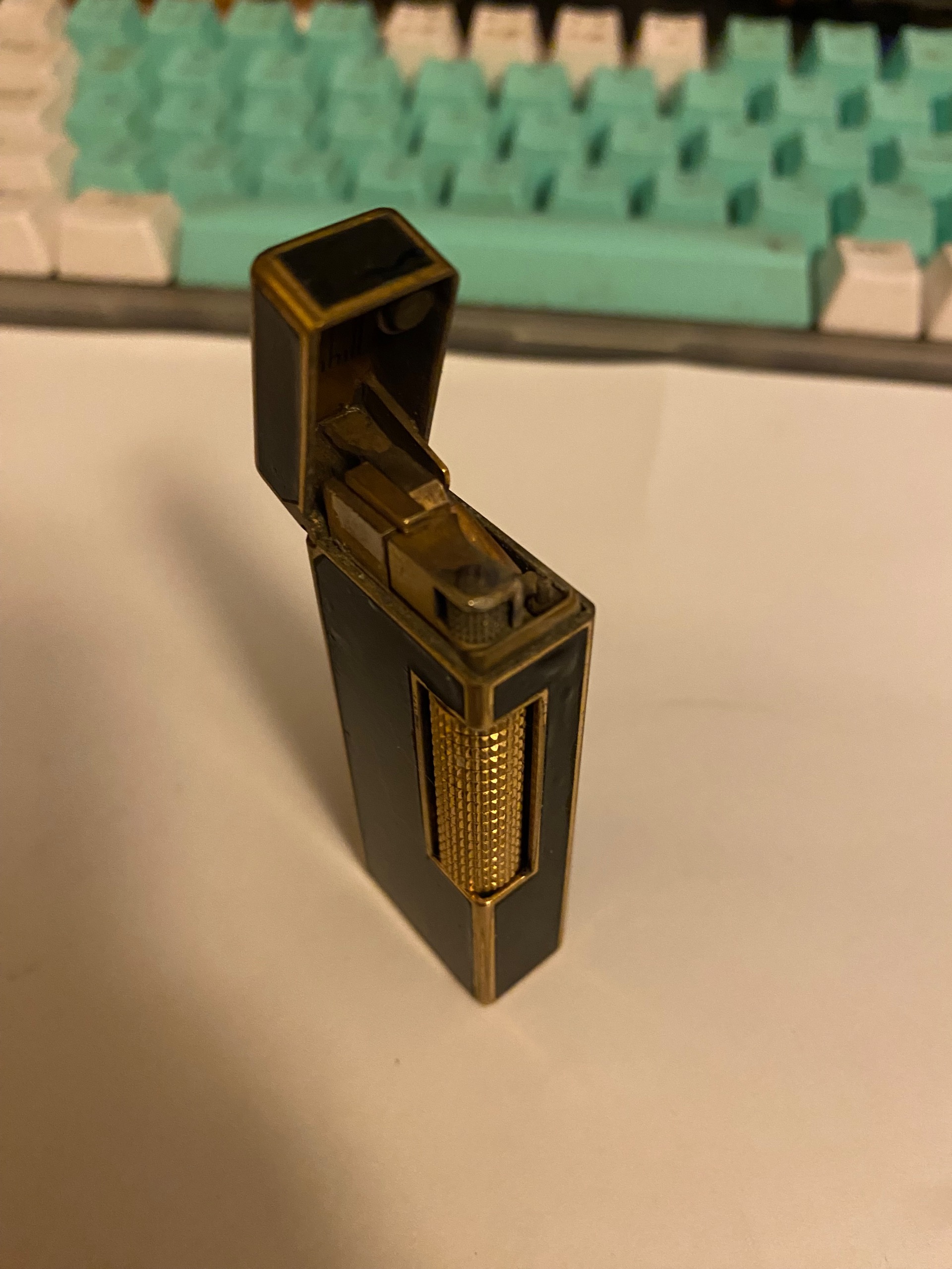 دانهیل اصل، روکش طلا، مکانیزم و فنی کاملاً سالم ، قسمت رنگ لاکی مشکی برخی قسمتها برچسب(لاکش) برآمدگی دارد و اگر دوست داشتید میتونید ترمیم کنید، اگرچه ظاهرش کاملاً قابل قبول هست، با توجه به کاندیشن فندک قیمت خوبی براش گذاشتم.