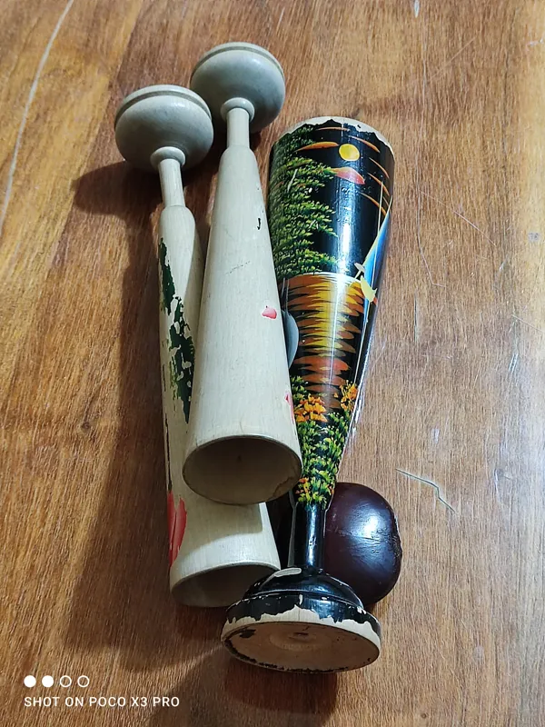 سه عدد جام چوبی دستساز قدیمی دوتاش جفته یکیش تک هر سه تاش قدیمی و کاملا دستسازه کار تایلندی نقاشی روش کار دسته کلا دستساز و کلکسیونیه