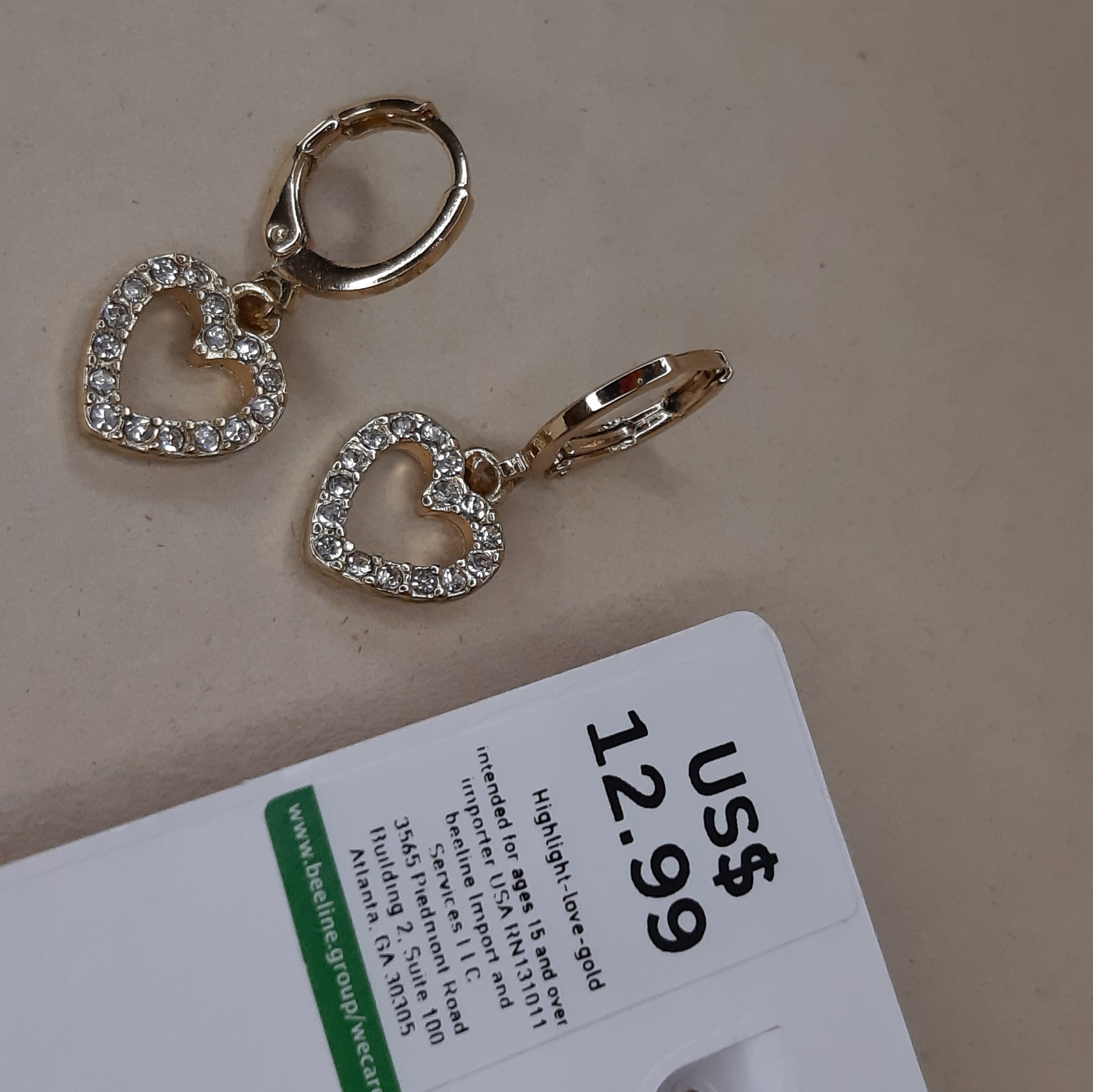 گوشواره دخترانه مدل قلب فول نگین ای ام