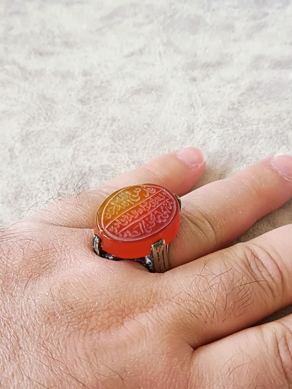 انگشتر عقیق خطی ذکردار چهارچنگ
