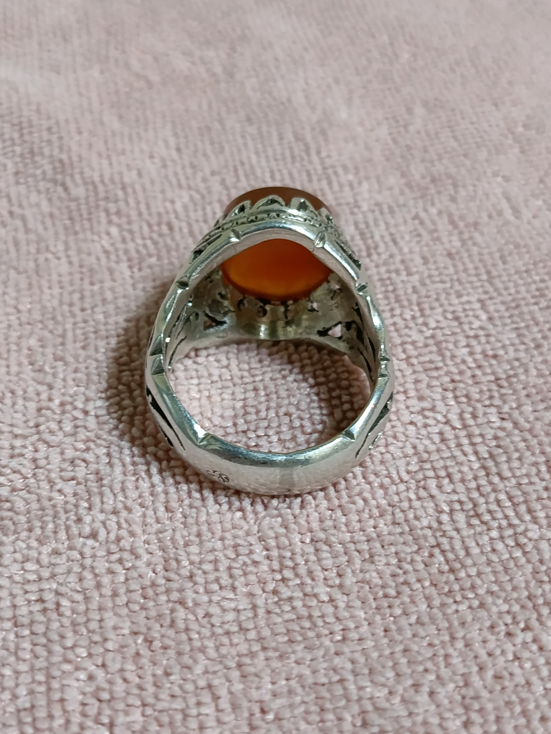 انگشتر یمنی کهنه روی نگین یا قمر بنی هاشم حک شده