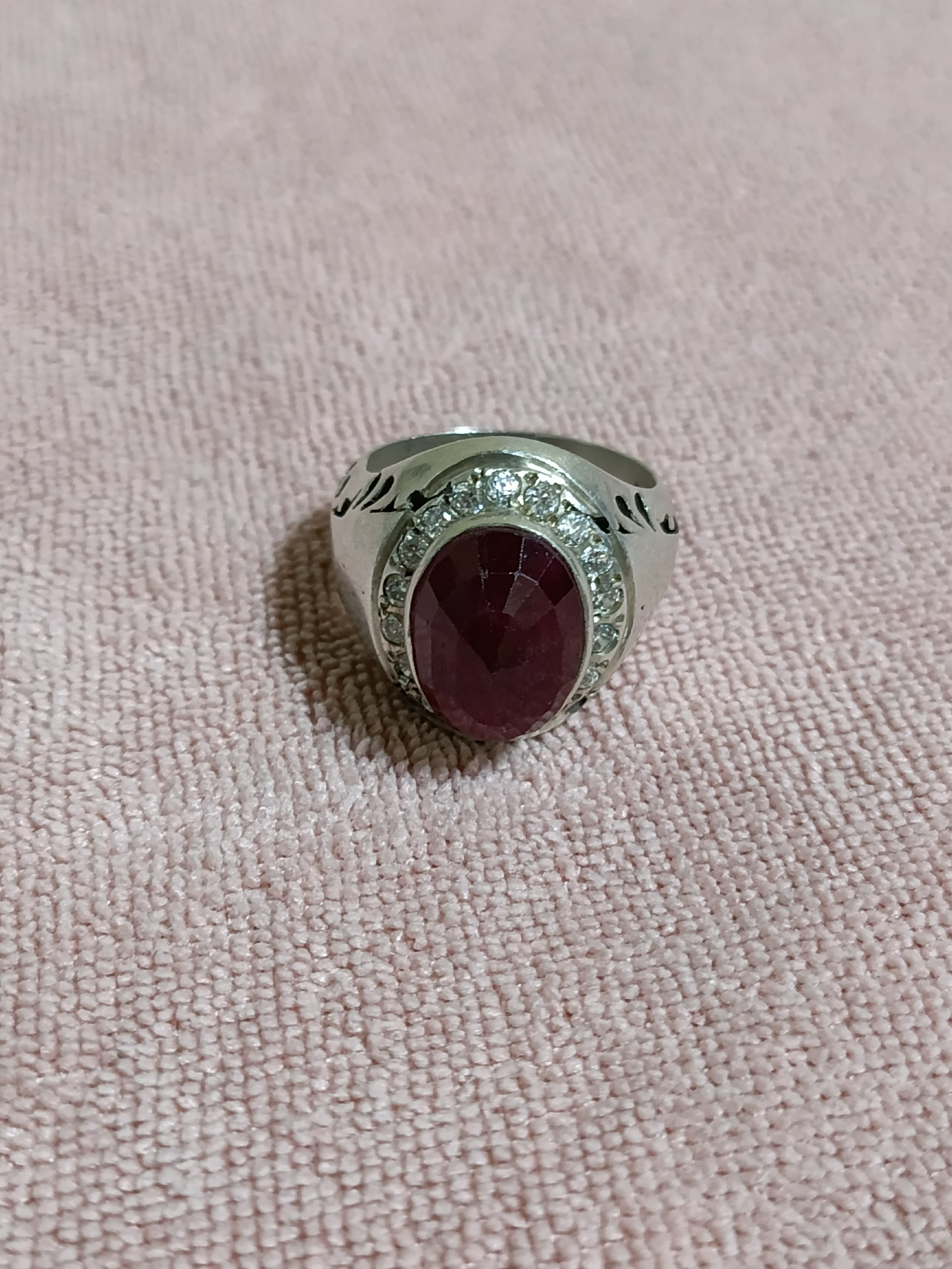 انگشتر یاقوت آفریقایی خون کفتری معدنی دور نگین برلیان کار شده