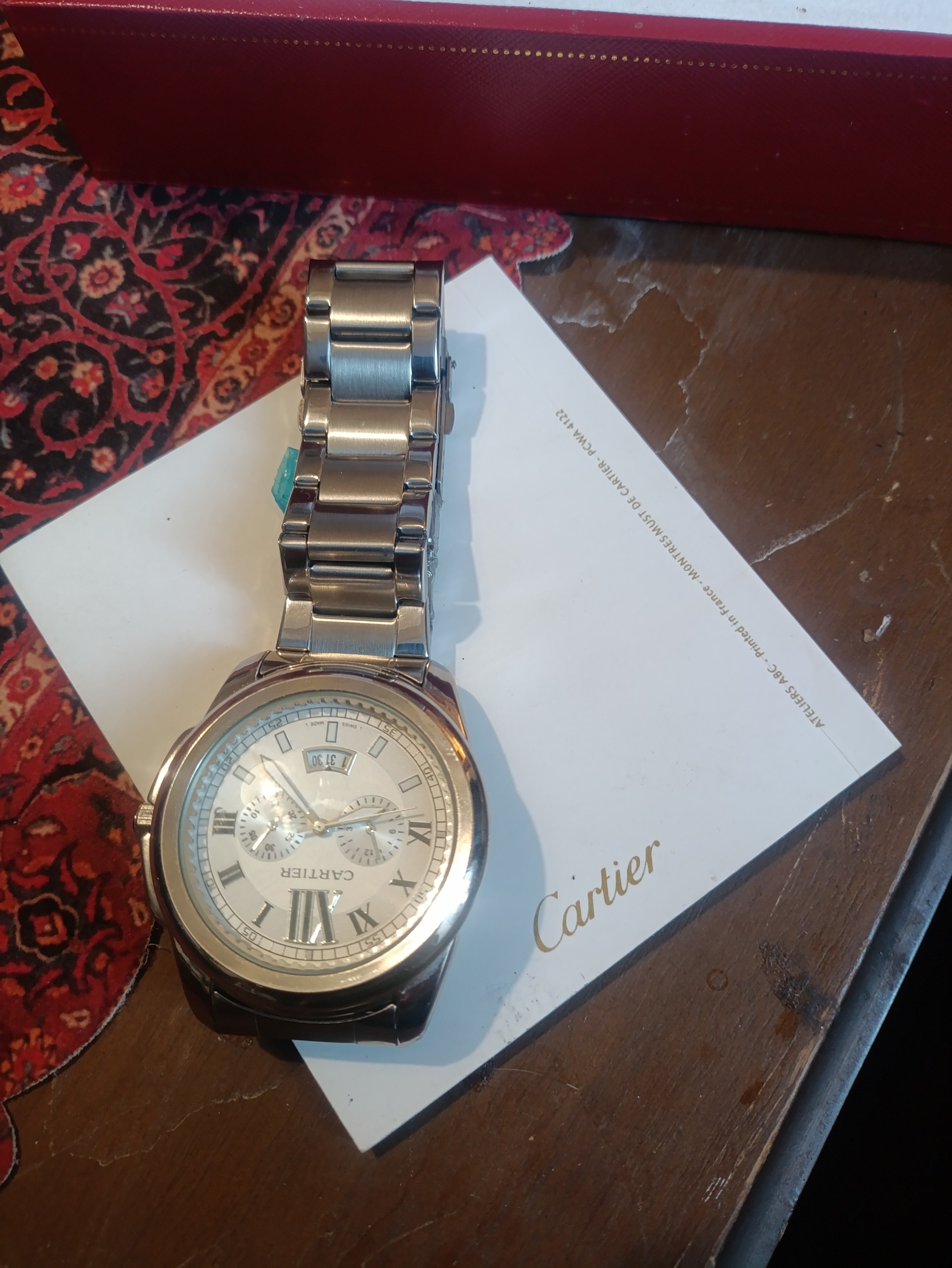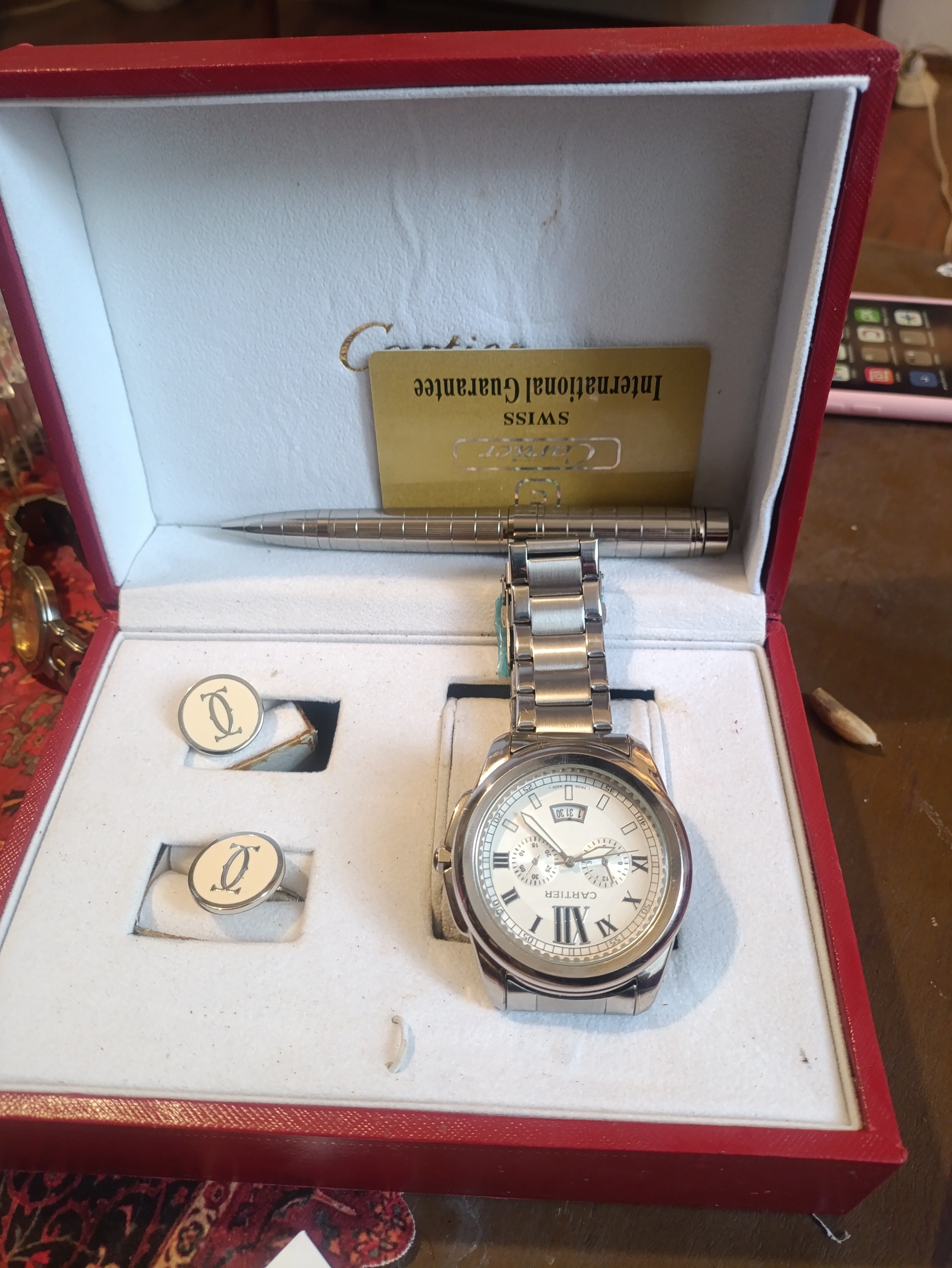 نمونه کپی درجه یک ساعت کارتیه از دبی آورده شده و دارای کارت گارانتی میباشد و آکبند است دارای جعبه و خودکار و دکمه سردست میباشد