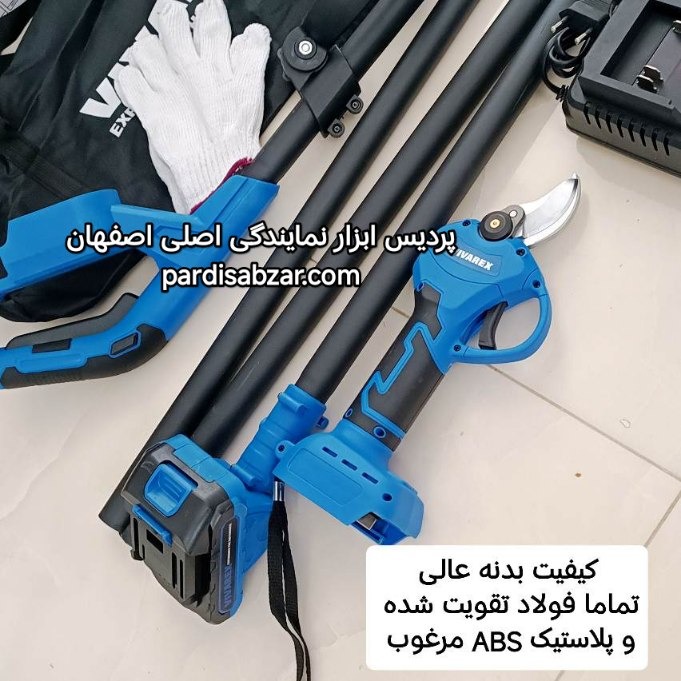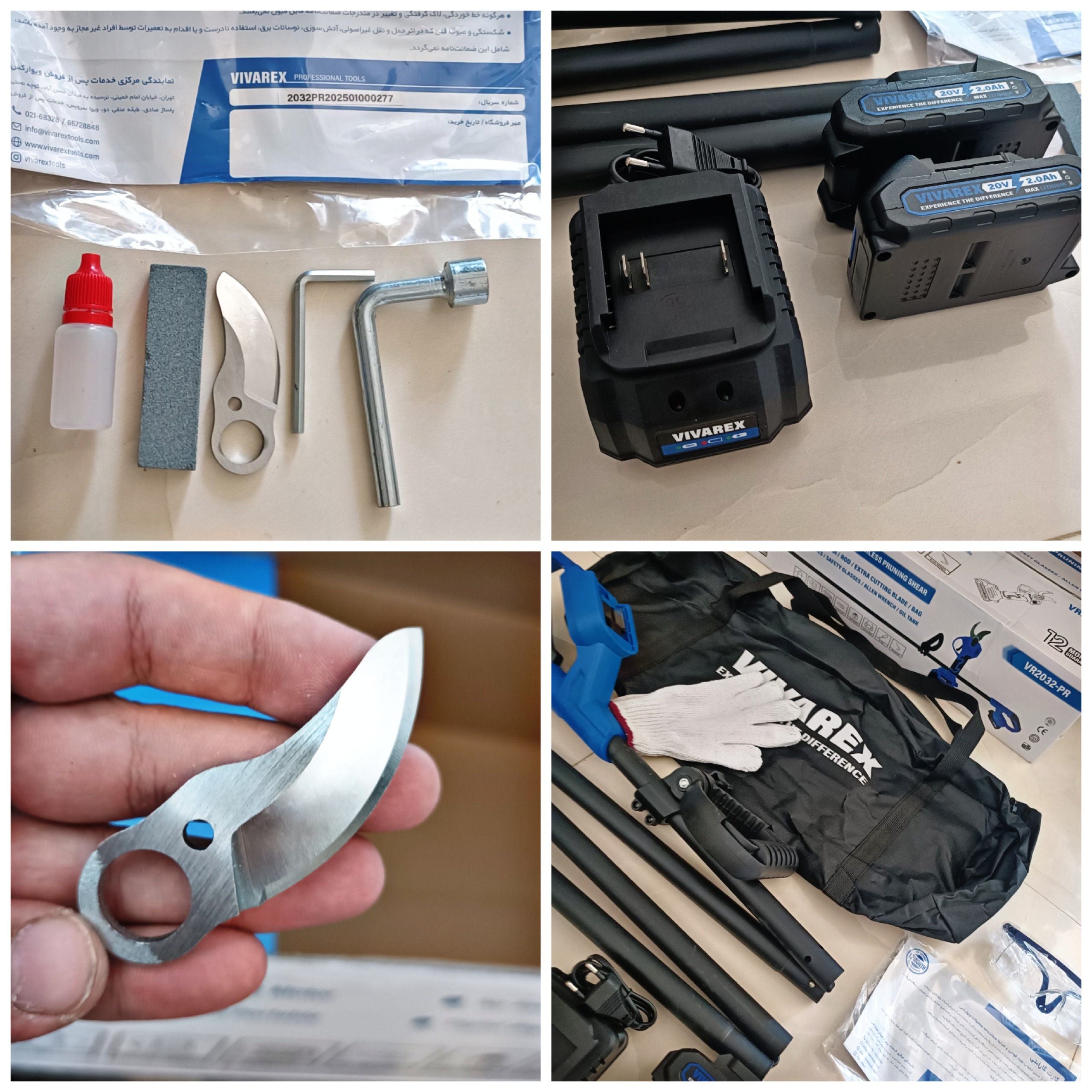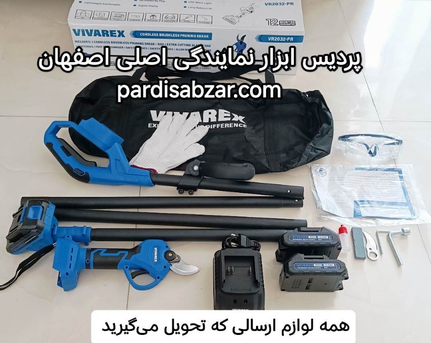 ست دو قلمی قیچی باغبانی شارژی 20 ولت همراه با دسته تلسکوپی 2.5متر فلزی از برند ویوارکس مدل: VR2032-PR