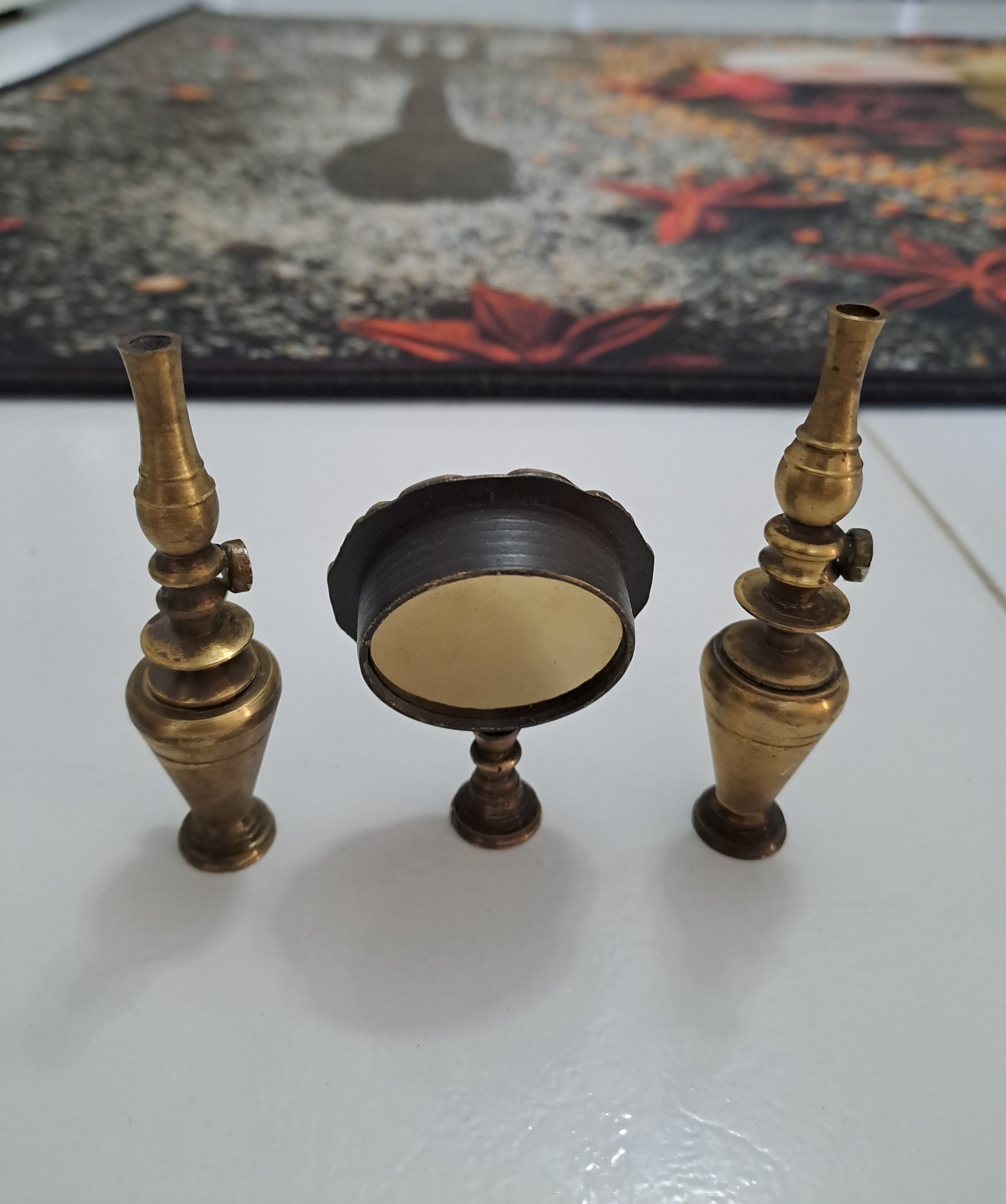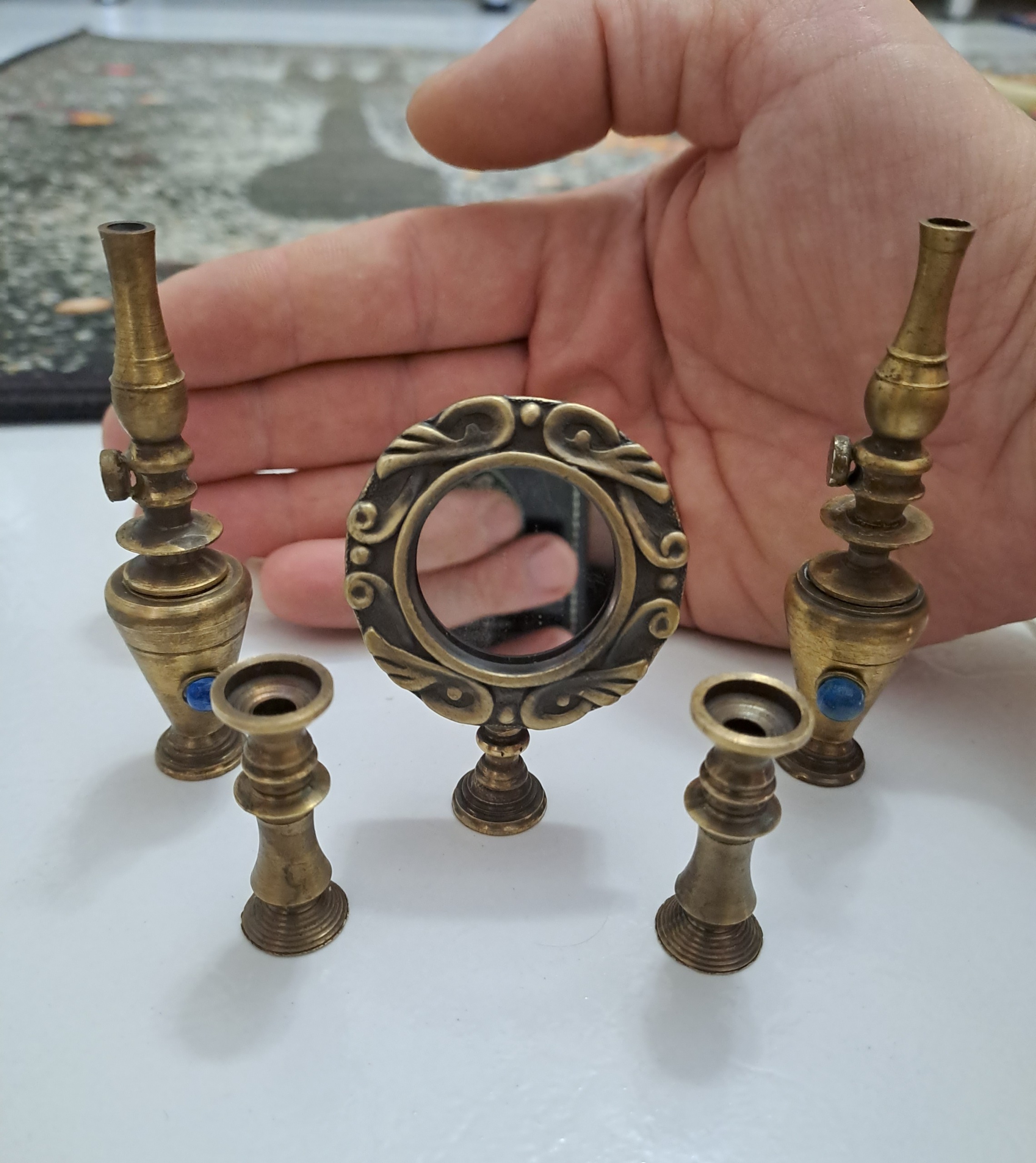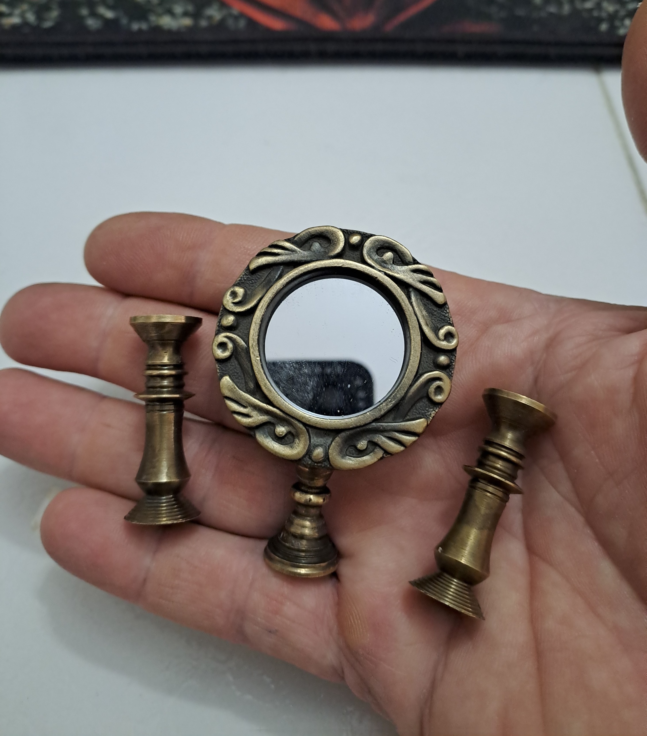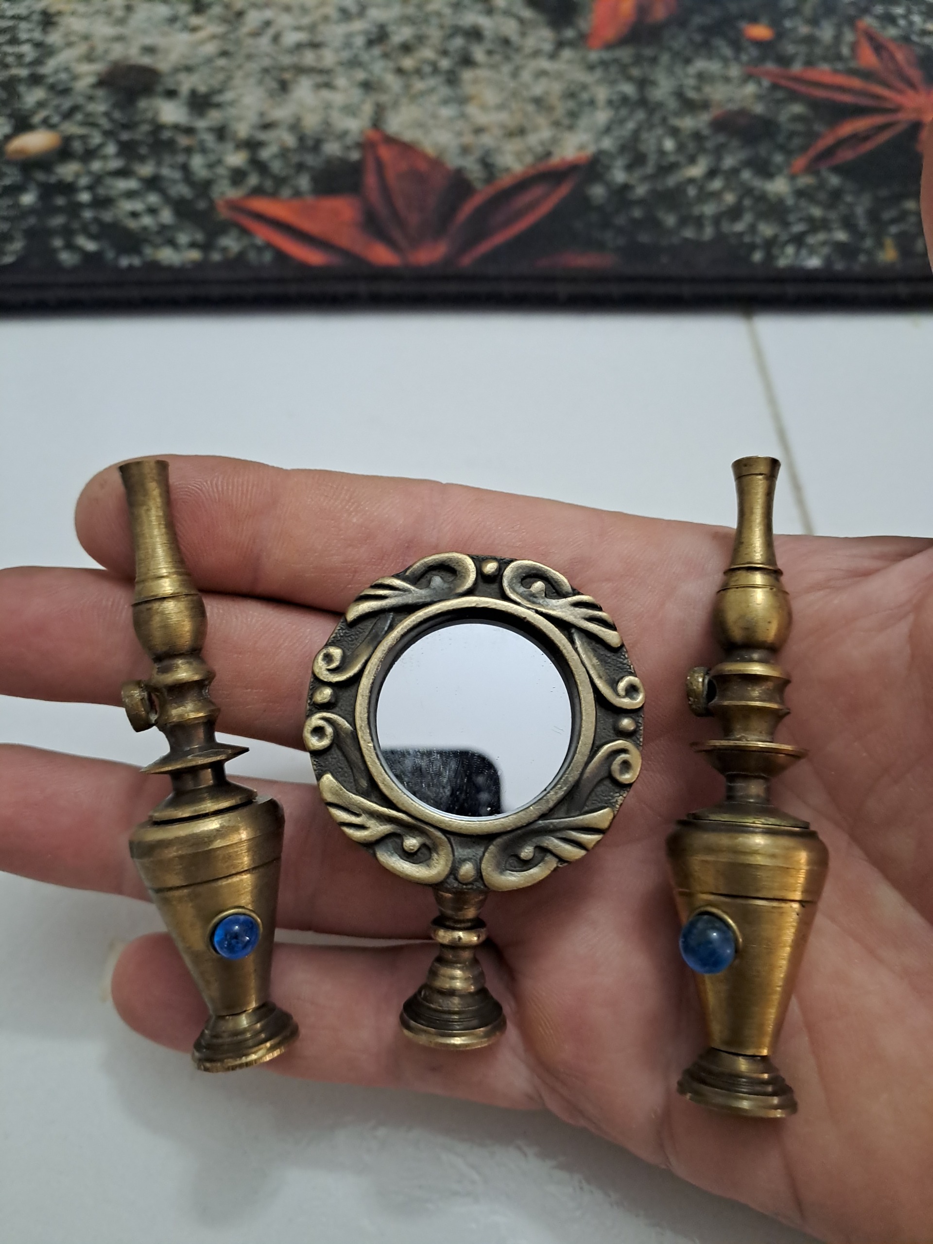 آینه مینیاتوری شمعدان گردسوز برنجی انتیک