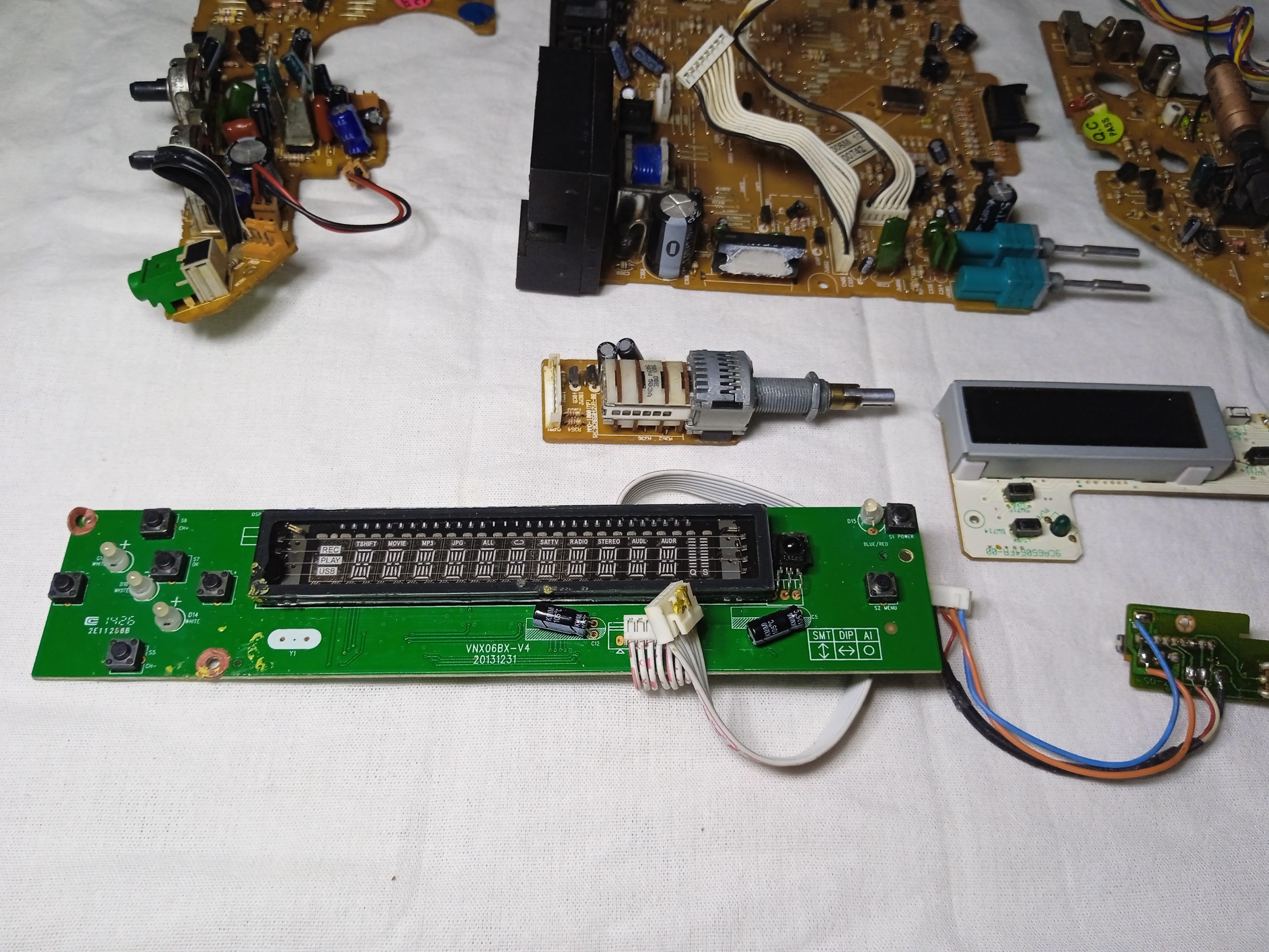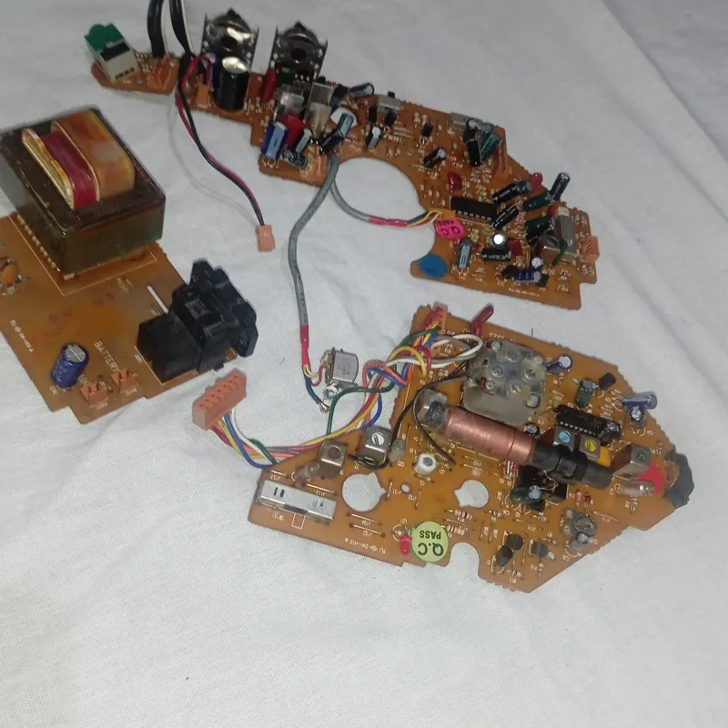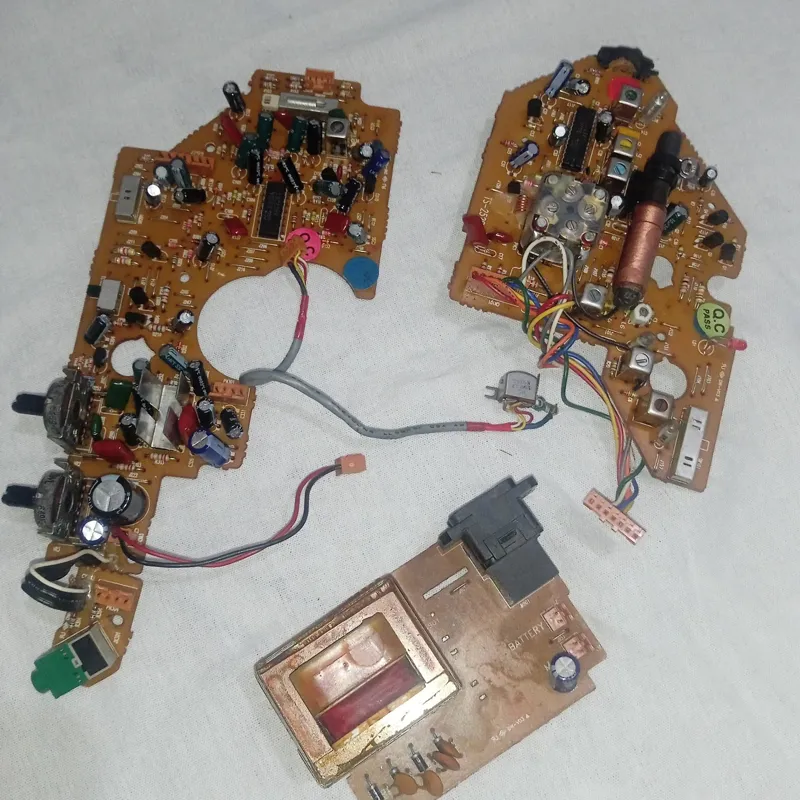 چند عدد برد ترانس قطعات از یک رادیو ظبط کاستی هستند کلید رون خامش برد شکسته