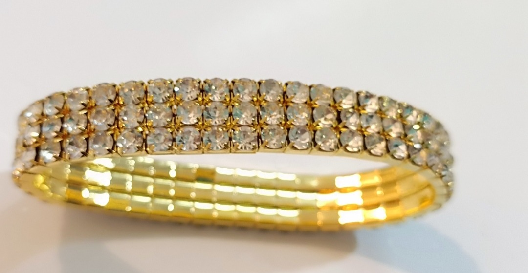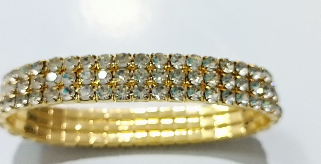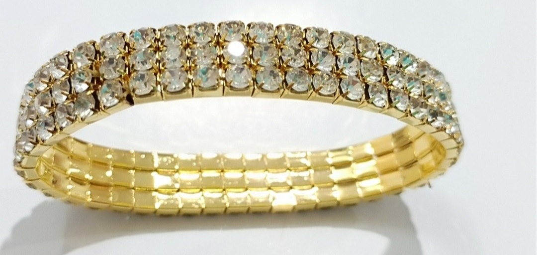 حراج دستبند وارداتی طلایی نگین دار فری سایز