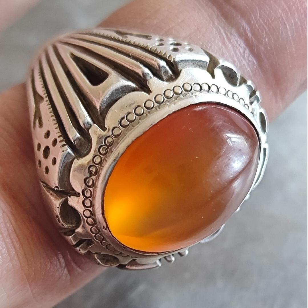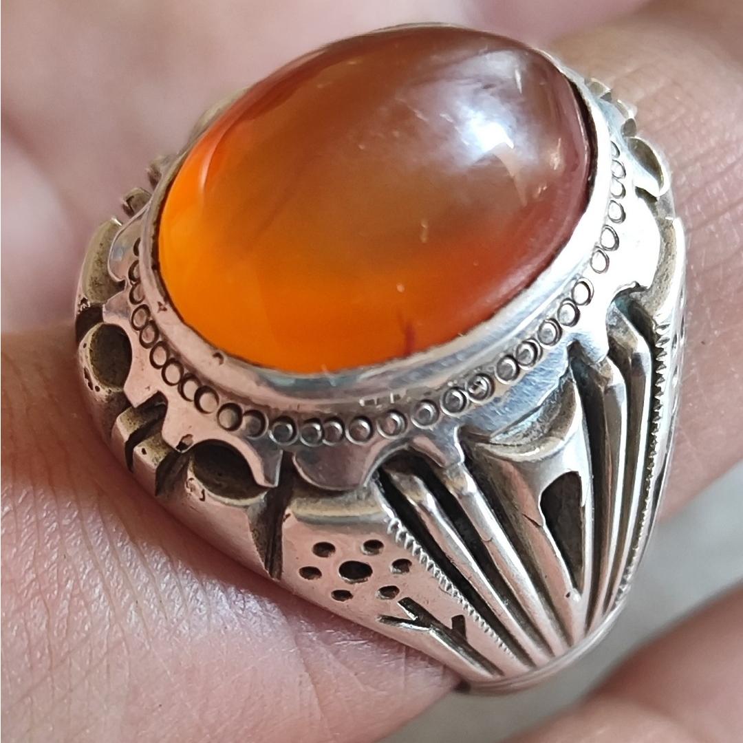 انگشتر قدیمی عقیق یمن تراش عبدالرزاقی دست ساز - زنجان