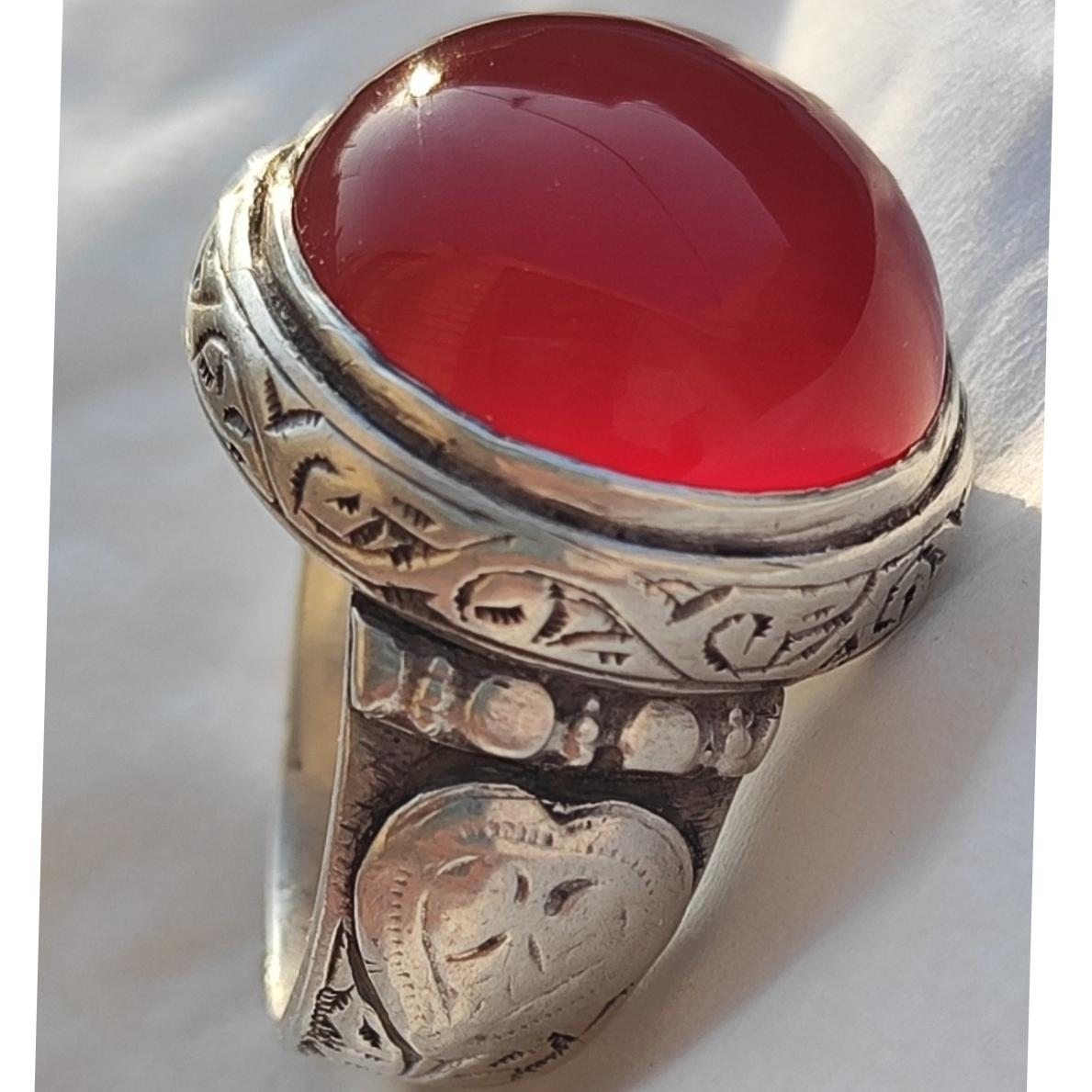 انگشتر عقیق قدیمی دست ساز پشت بسته