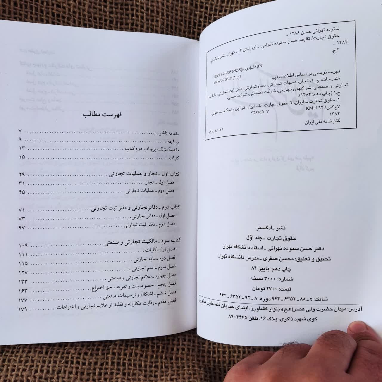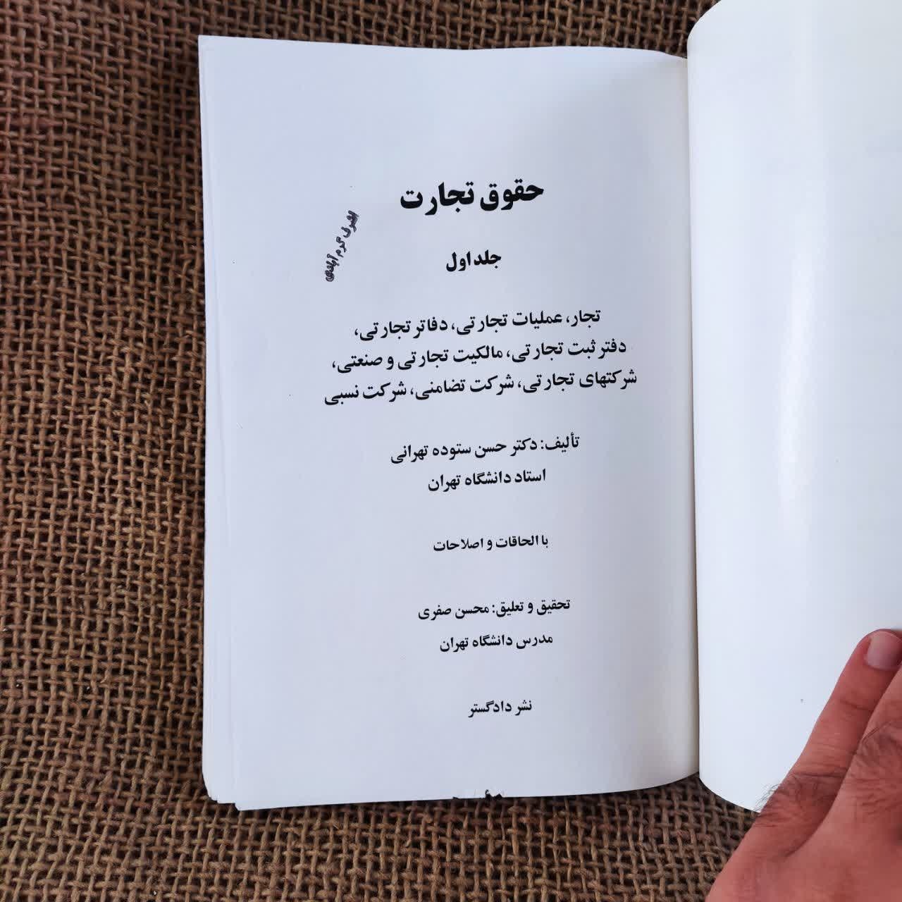 حقوق تجارت جلد اول دکتر حسن ستوده تهرانی