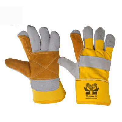 دستکش صنعتی چرم کف دوبل مخصوص کارهای آهنگری جوشکاری برش کاری با کیفیت بالا و جنس بدنه چرم و برزنت برای بالا بردن دوام