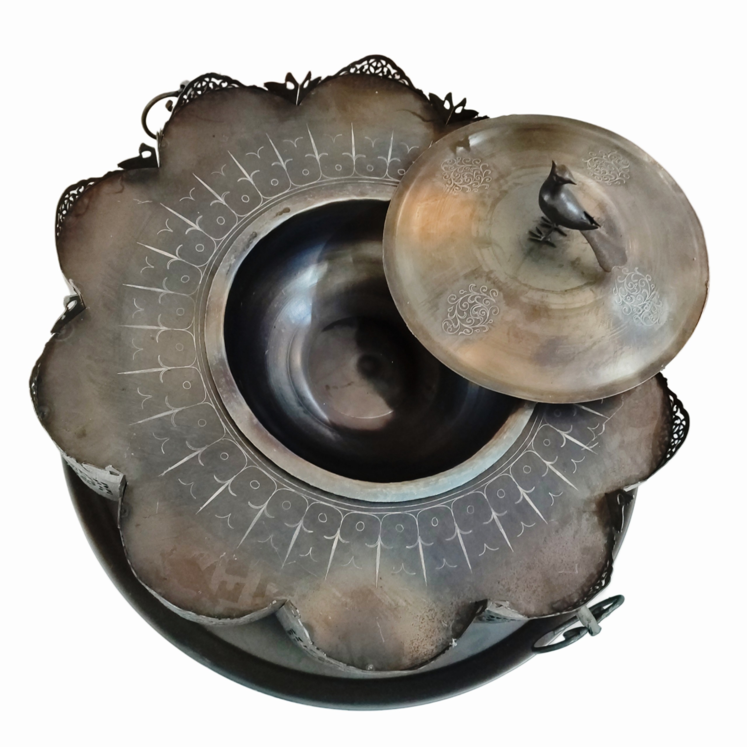 منقل 10 قل فولادی نقره کوبی ذغالی زغالی بزرگ هدیه