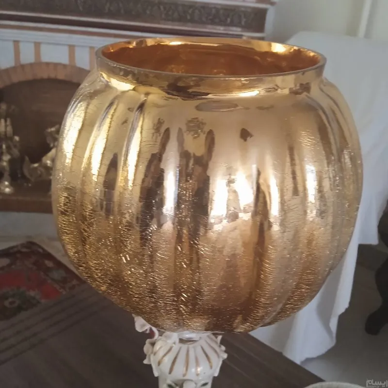 تک لاله گل برجسته با بهتربن نوع تراش شیشه ارتفاع حدود70 سانتیمتر بکر ودست نخورده طلاکوبی گسترده وقیمت مناسب