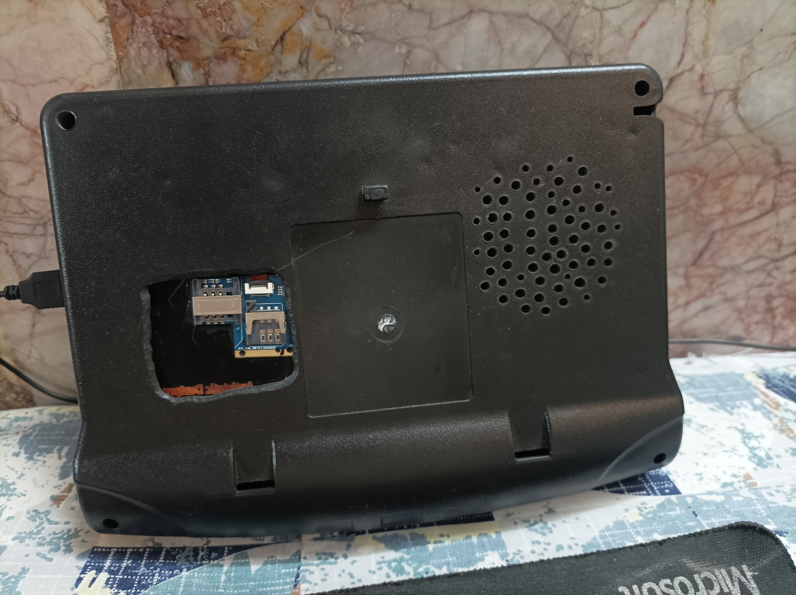 تبلت دست ساز داخل قاب.لمس ندارد و یک خروجی یو اس بی دارد که ماوس کار میکند.اندروید 4.2.2 .دوسیم کارت قابلیت تماس ندارد.حافظه داخلی چهار گیگ.وای فای دارد.دوربین ندارد..بلندگوی قوی پخش صوت.مناسب بازی بچه مرور وب و .....شارژر و ماوس دارد.باتری داخلی 4000