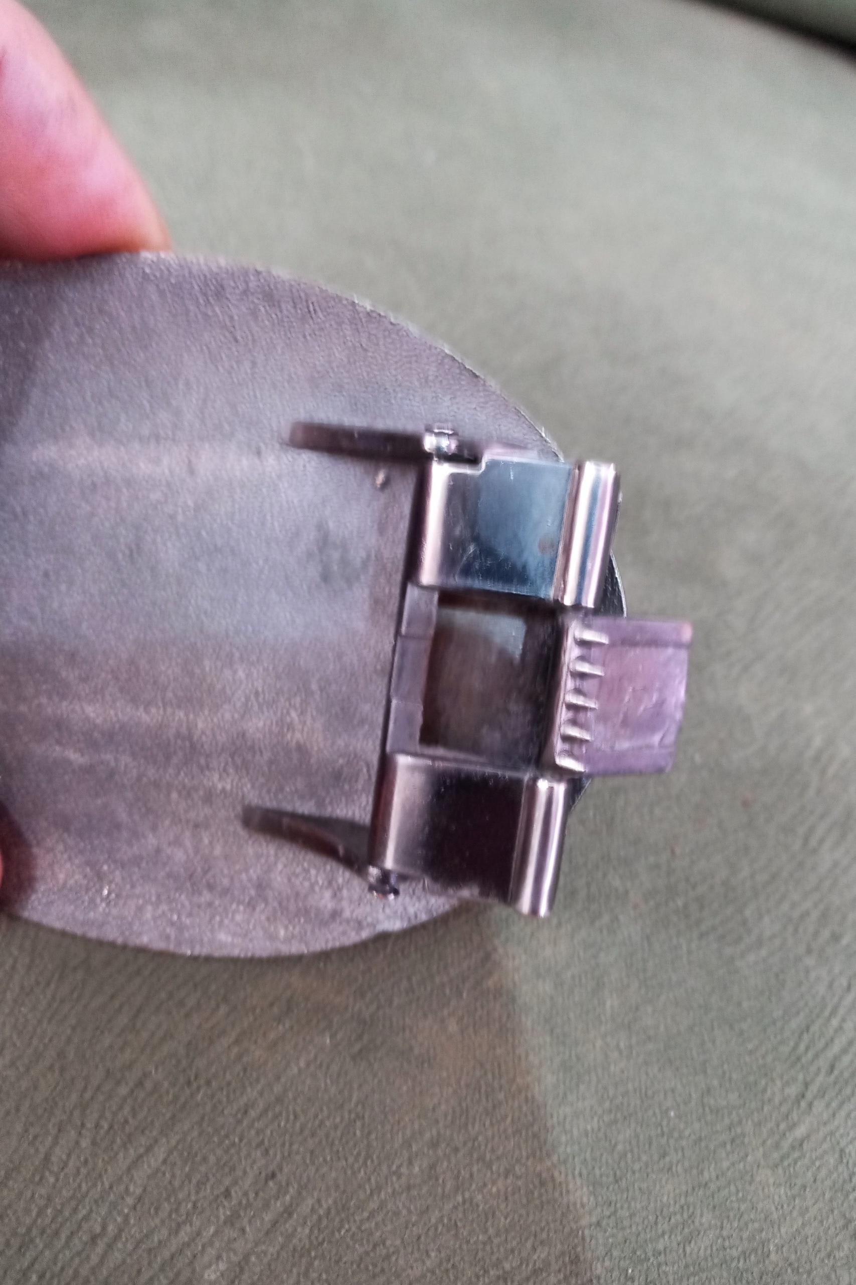 متاسفانه میخ سگک افتاده که قابل تعمیر هستش ومیشه پیچ چرم کمربند بسته بشه که همون کارو میکنه
