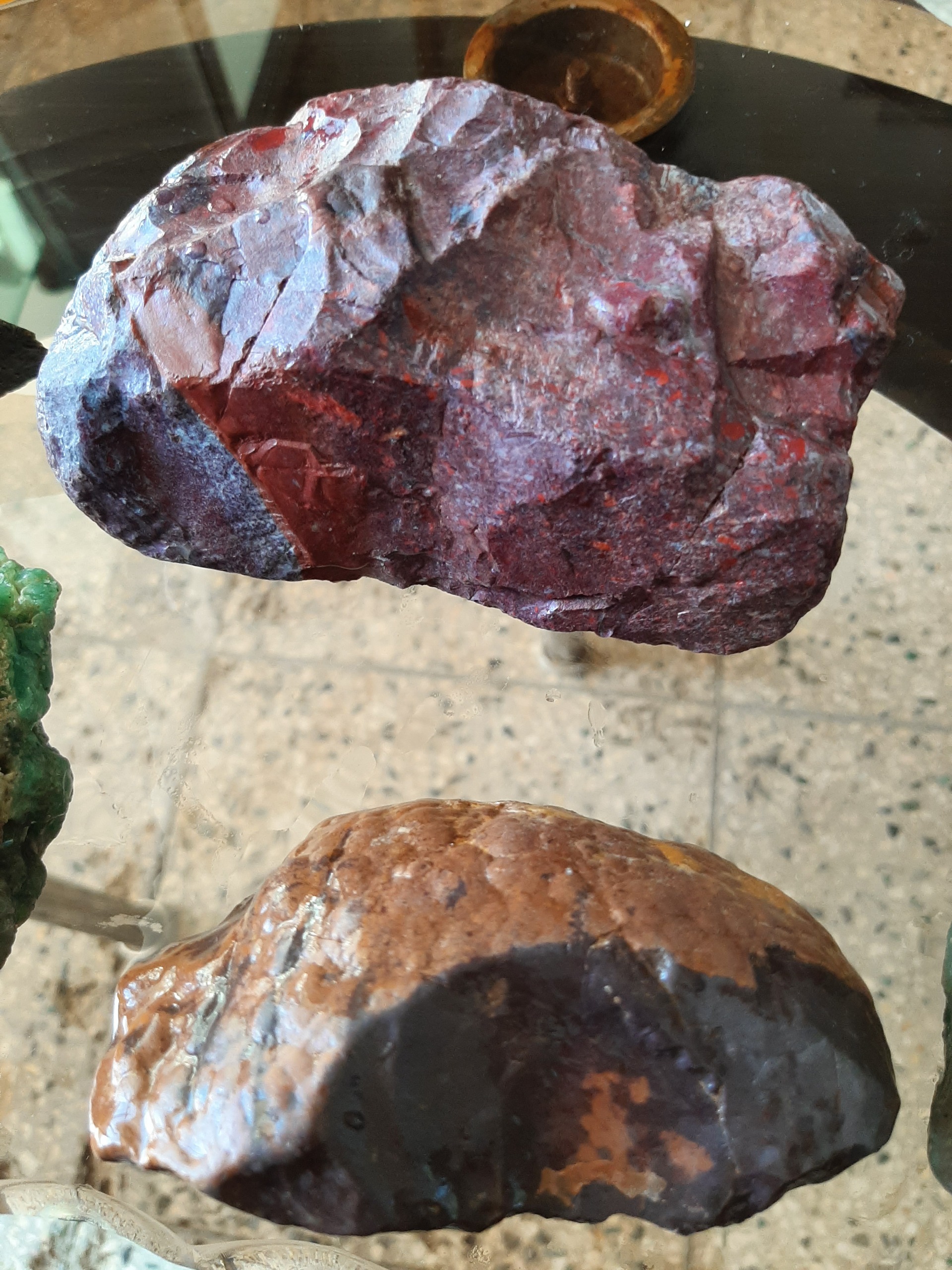 یک عدد فسیل چندین میلیون ساله 2کیلو کرم+1کبلو گرم عقیق سوسنی+1کیلو عقیق عنابی،1کیلو جاسپر قرمز با نیم کیلو عقیق قهوه ای همگی باهم فقط3900