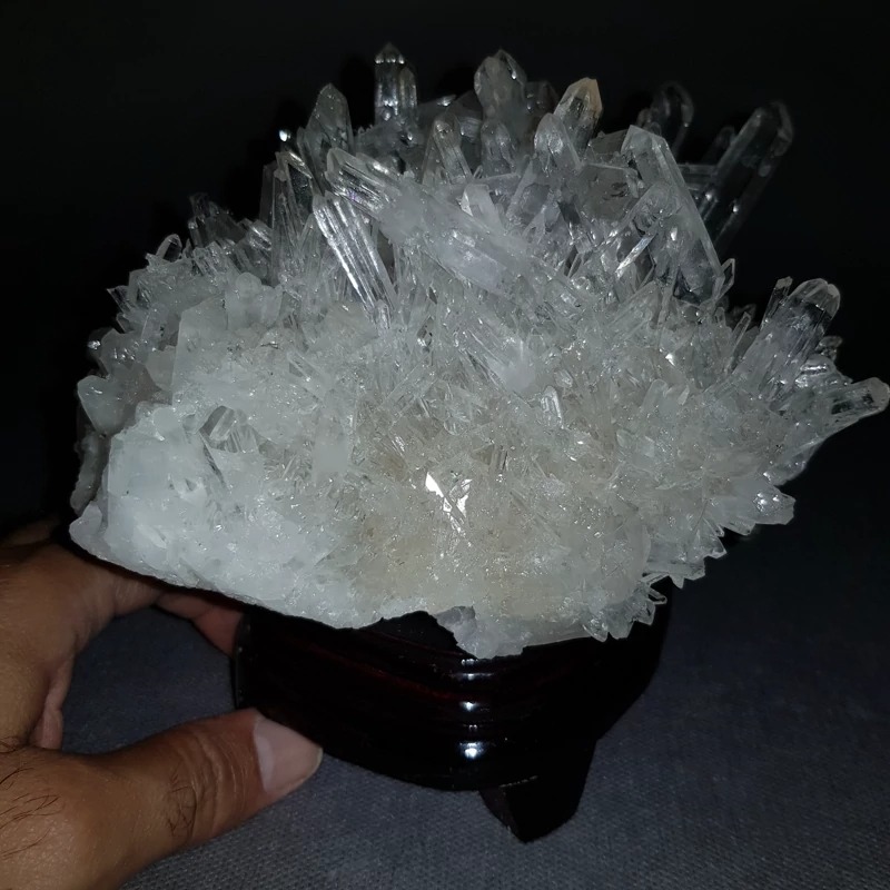 گوهر سنگ استثنایی و کمیاب بلور سنگ کریستال راک نصب شده روی پایه چوبی نفیس