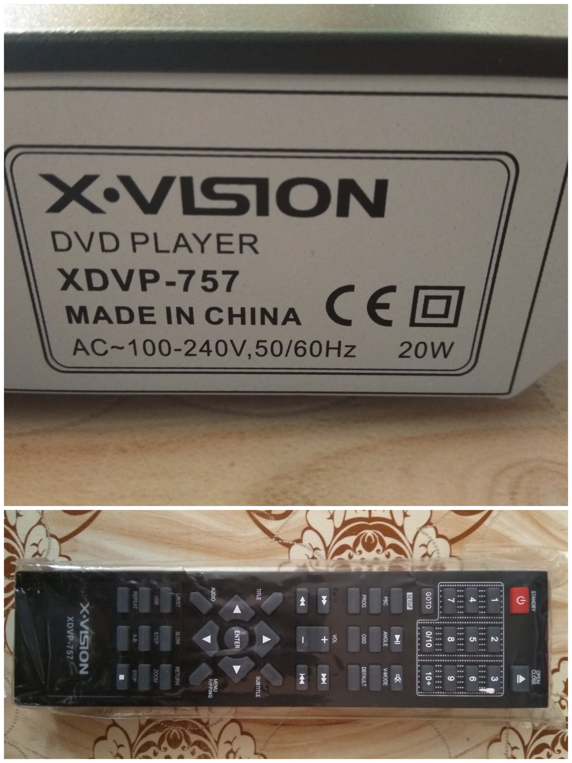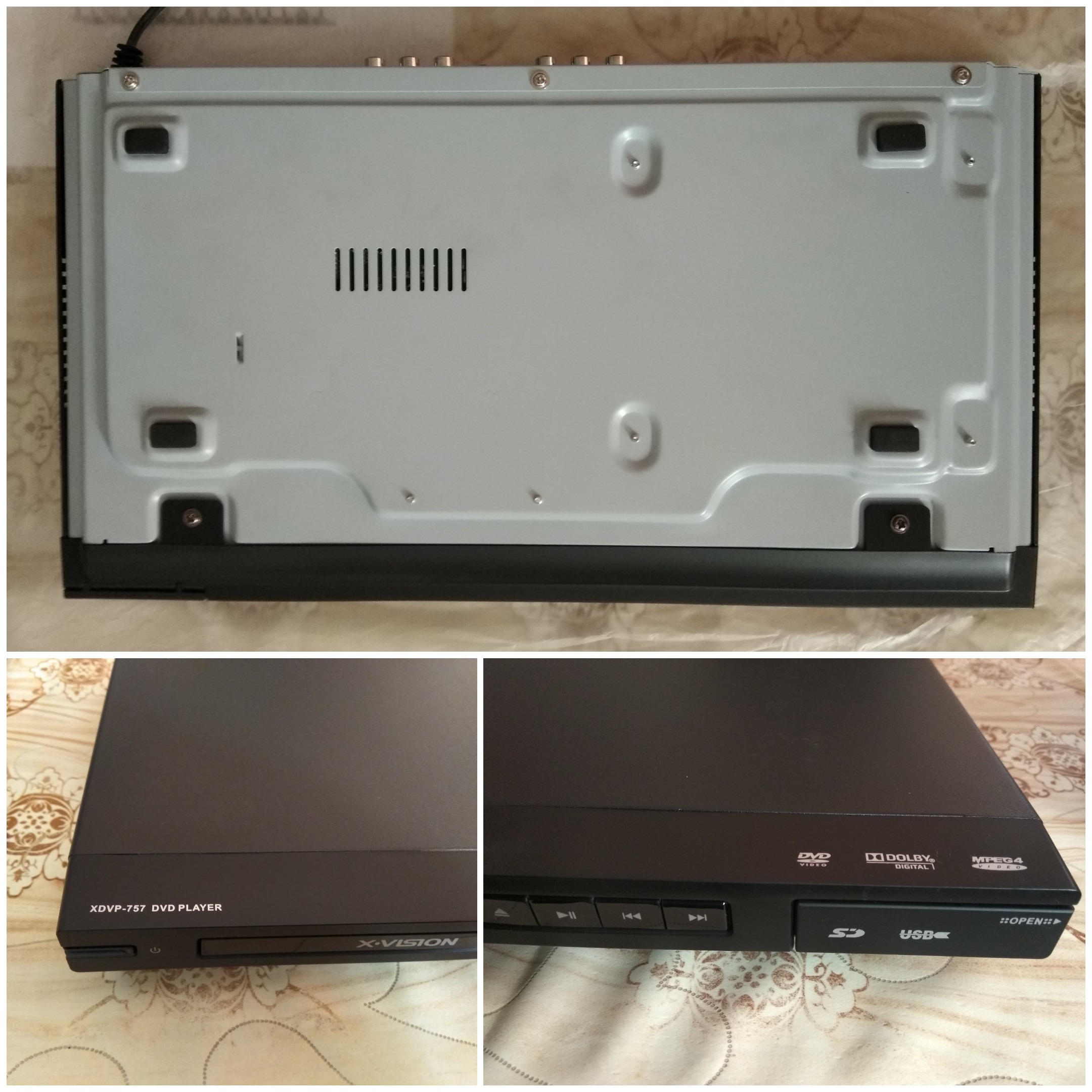 یک دستگاه دی وی دی پلیر X-VISION ساخت چین فلش خور و اس دی خور دارای انواع خروجیهای آنالوگ و دیجیتال با جعبه و ریموت کنترل اصلی و دفترچه راهنما. .عملا کار نکرده سالهای متمادی داخل جعبه بدون استفاده بوده. بسیار تمیز در حد آک بدون خط و خش مشابه نو و کاملا سلامت از هر نظر (لنز و...)