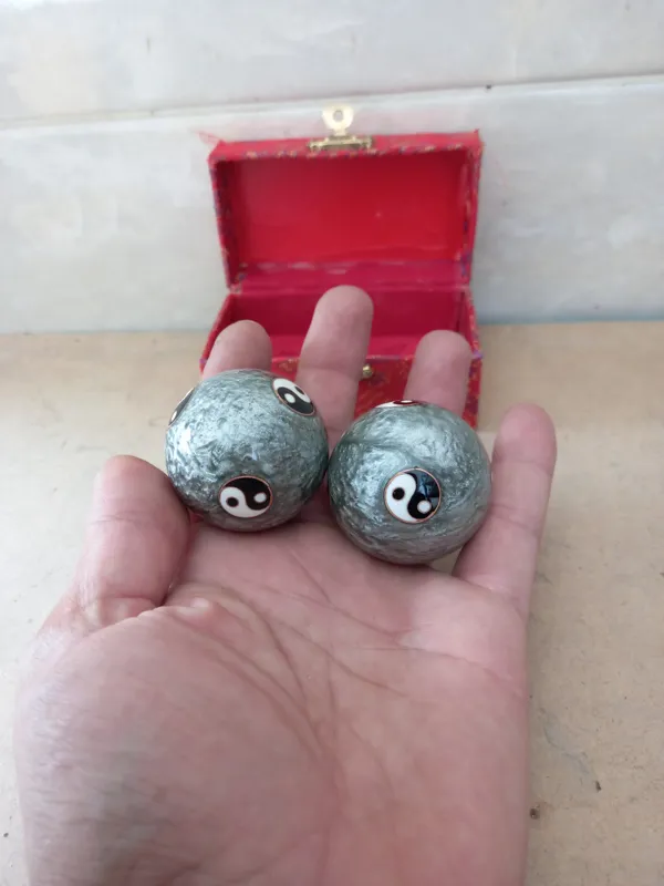 جفت گوی ارامش اعصاب باطراحی زیبا وکیفیت خوب دکوری وقابل استفاده اندازه گوی 4سانت به همراه جعبه مخصوص رنگ نقره ای مینا کاری شده کار خارجی به همراه صدای ملایم موقع تکان دادن
