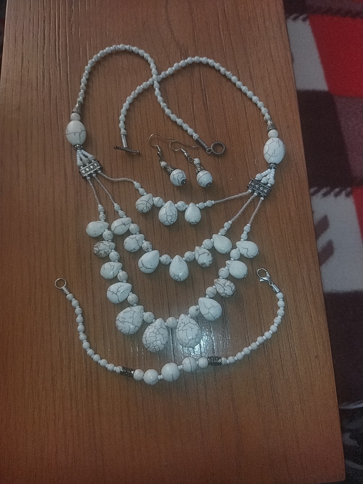 سرویس گردنبند دستبند گوشواره با سنگ هولیت لطفاً خواص سنگ را مطالعه کنید دست ساز پول سنگشم نمیشه قیمتش