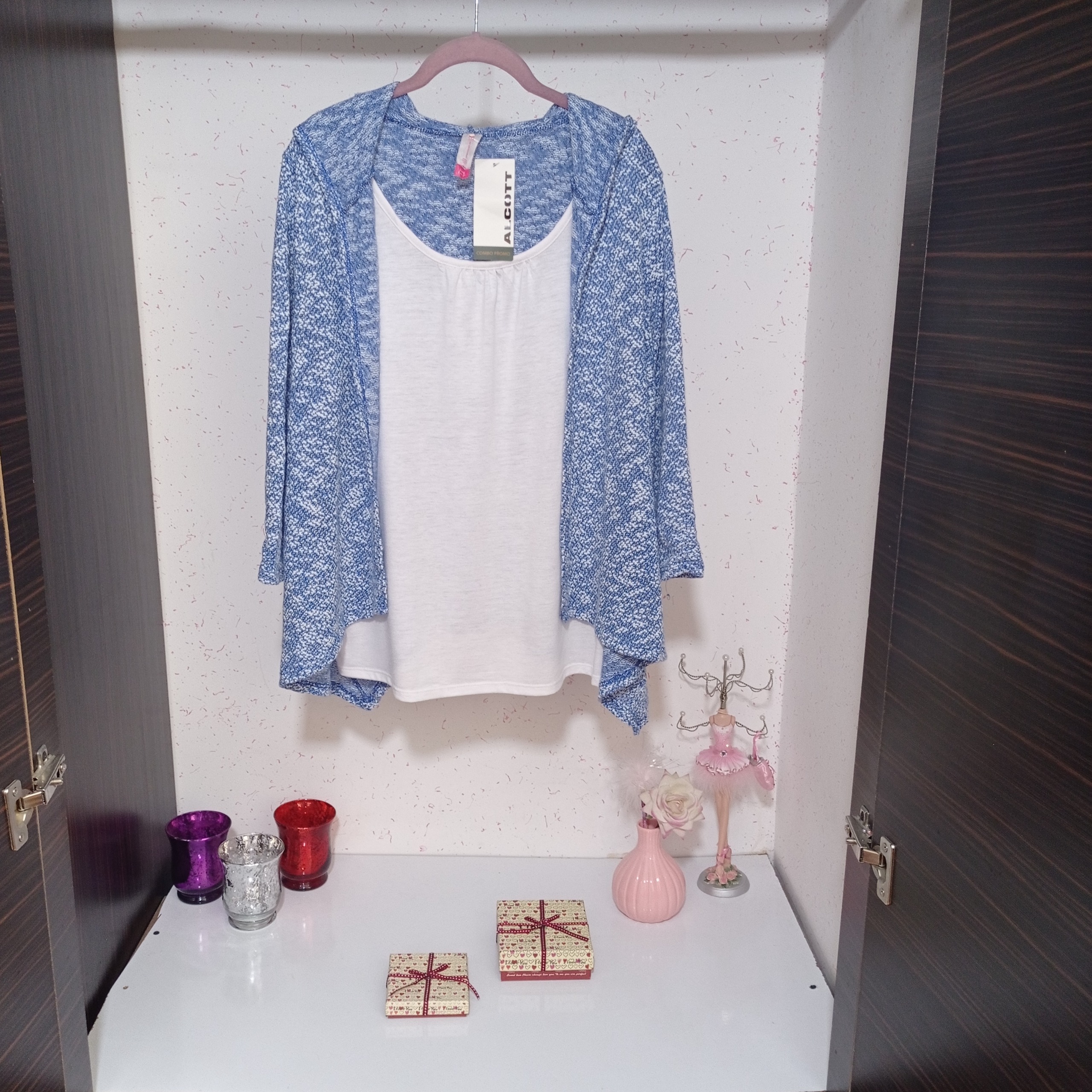 یه ست خاص و خوشاستایل که تاپ سفید داخلش دوخته شده و به لباس وصله