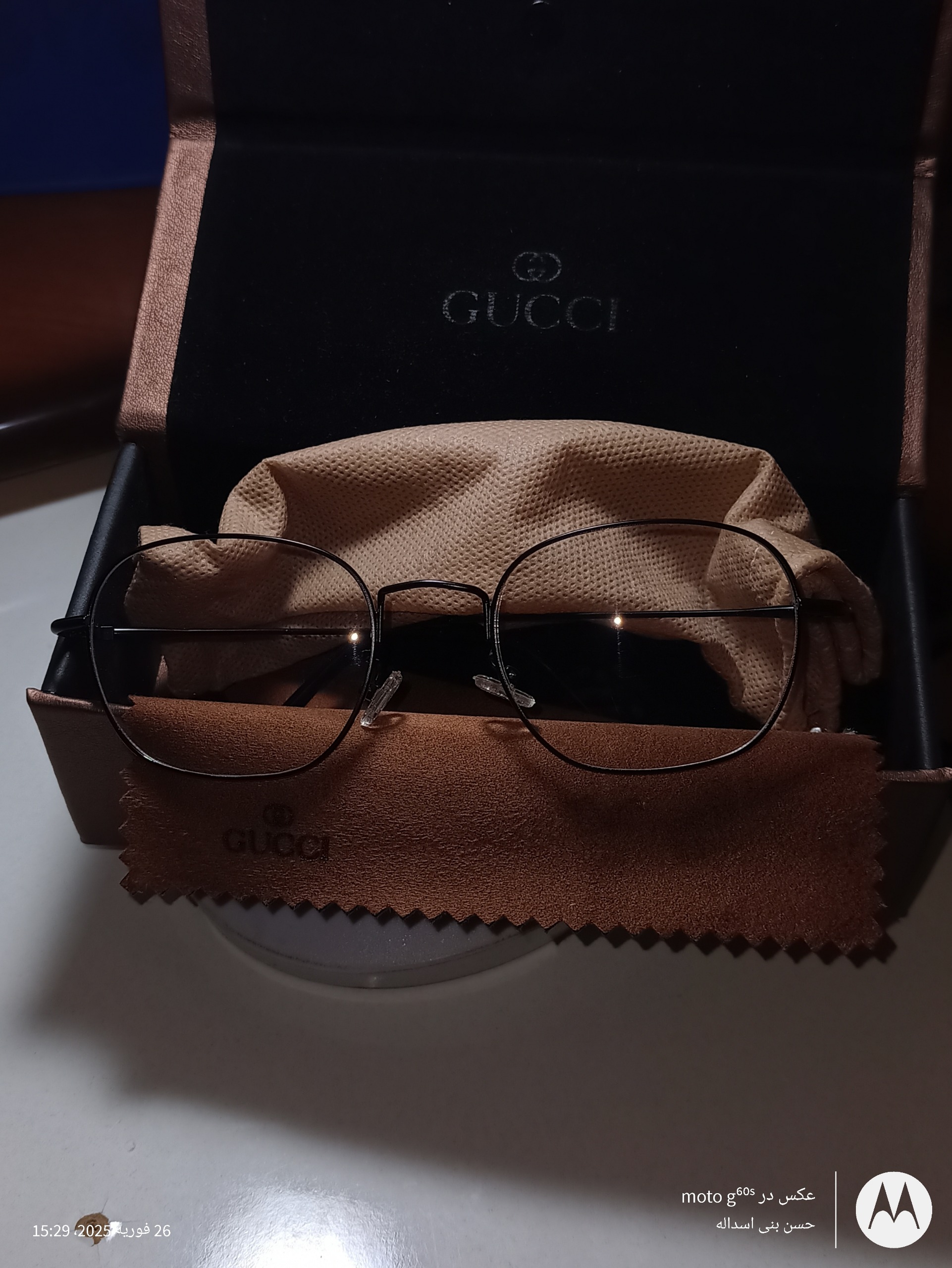 عینک طبی مربعی بلوکات مدل برند گوچی سایز 58 بدنه از جنس فلز بسیار سبک و زیبا و ظریف با شیشه های رفلکس از جنس پلی کربنات شفاف و نشکن و مقاوم و دماغی متحرک که می توان به آرامی به سمت بالا و پایین و چپ و راست با بینی تنظیم کرد زنانه و مردانه مخصوص کارهای روزمره قابلیت دید در شب جهت مطالعه و تماشای تلویزیون و کار با موبایل و کامپیوتر که اشعه مضر آنها دفع می کند و مانع آسیب به چشم میشود بهمراه دستمال و کاور و جعبه مخصوص گوچی