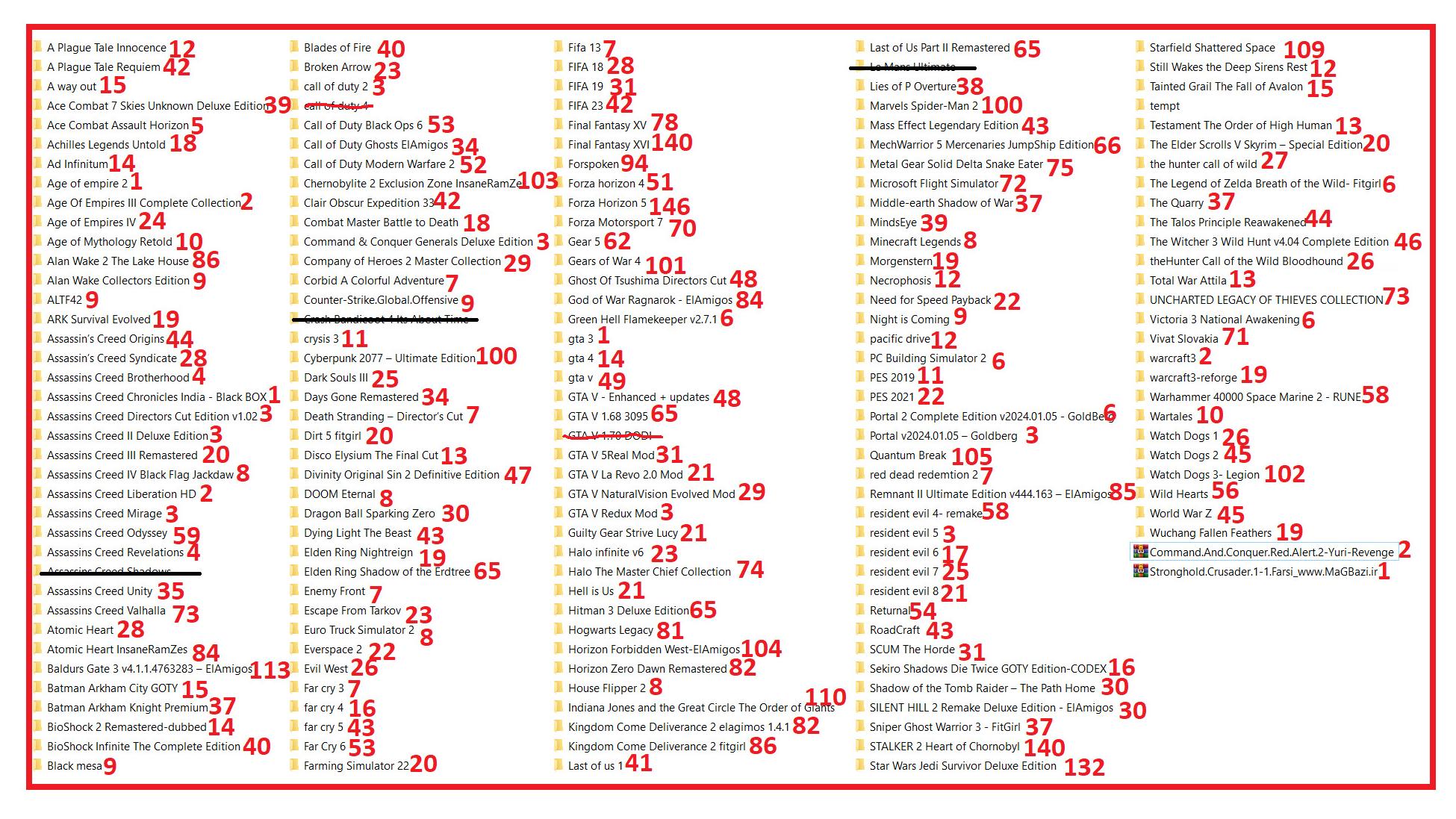 شما میتوانید با توجه به عکس آخر و حجم بازی هایی که کنار آنها به رنگ قرمز نوشته شده، به انتخاب خود بازیهایی که را میخواهید انتخاب کنید
