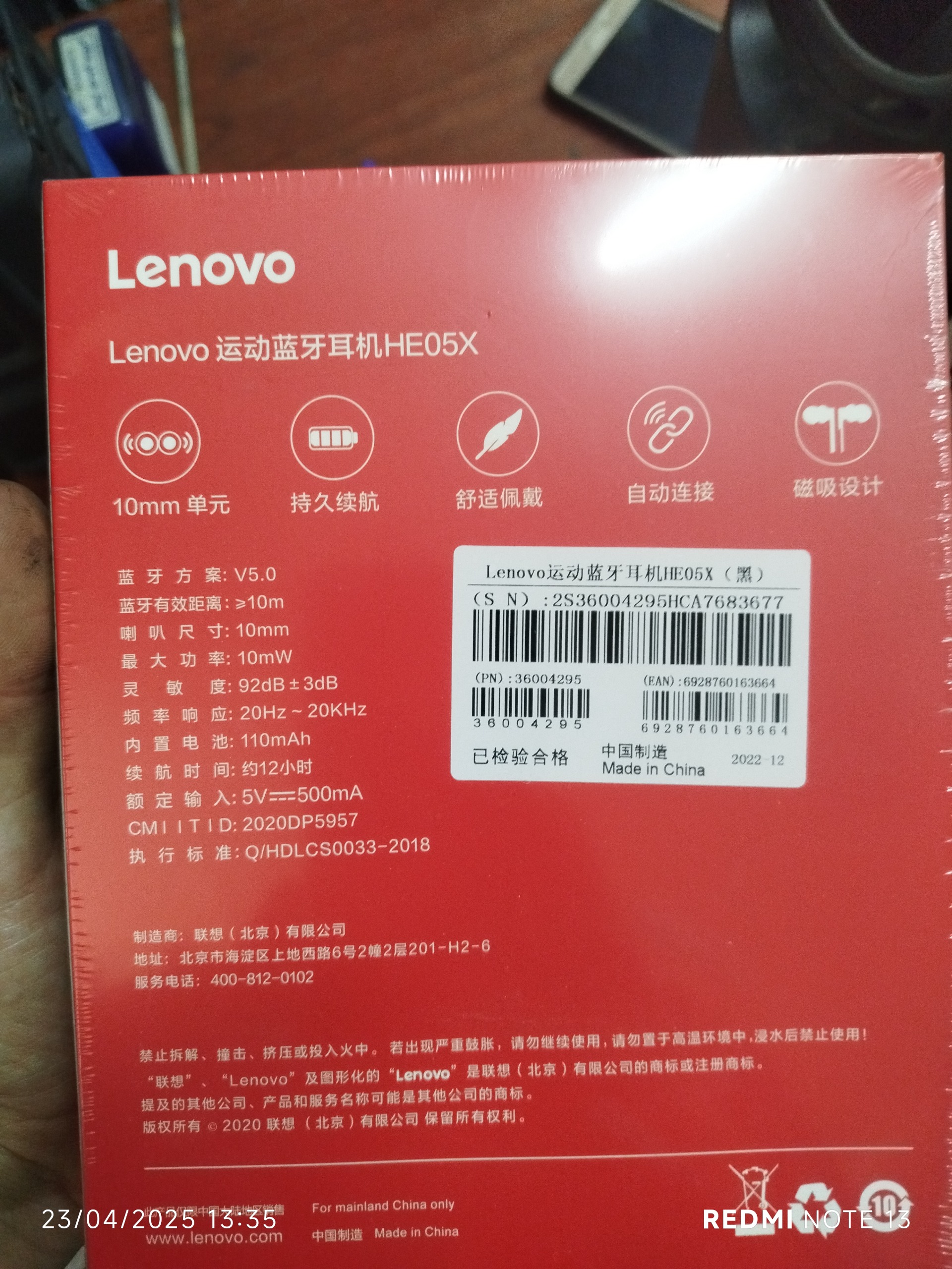 هندزفری بلوتوث گردنی لنوو مشکی مدل HE05X