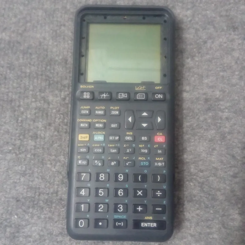 یک عدد ماشین حساب CASIO FX-5500LA که کابل صفحه نمایش آن کاملا از بین رفته.