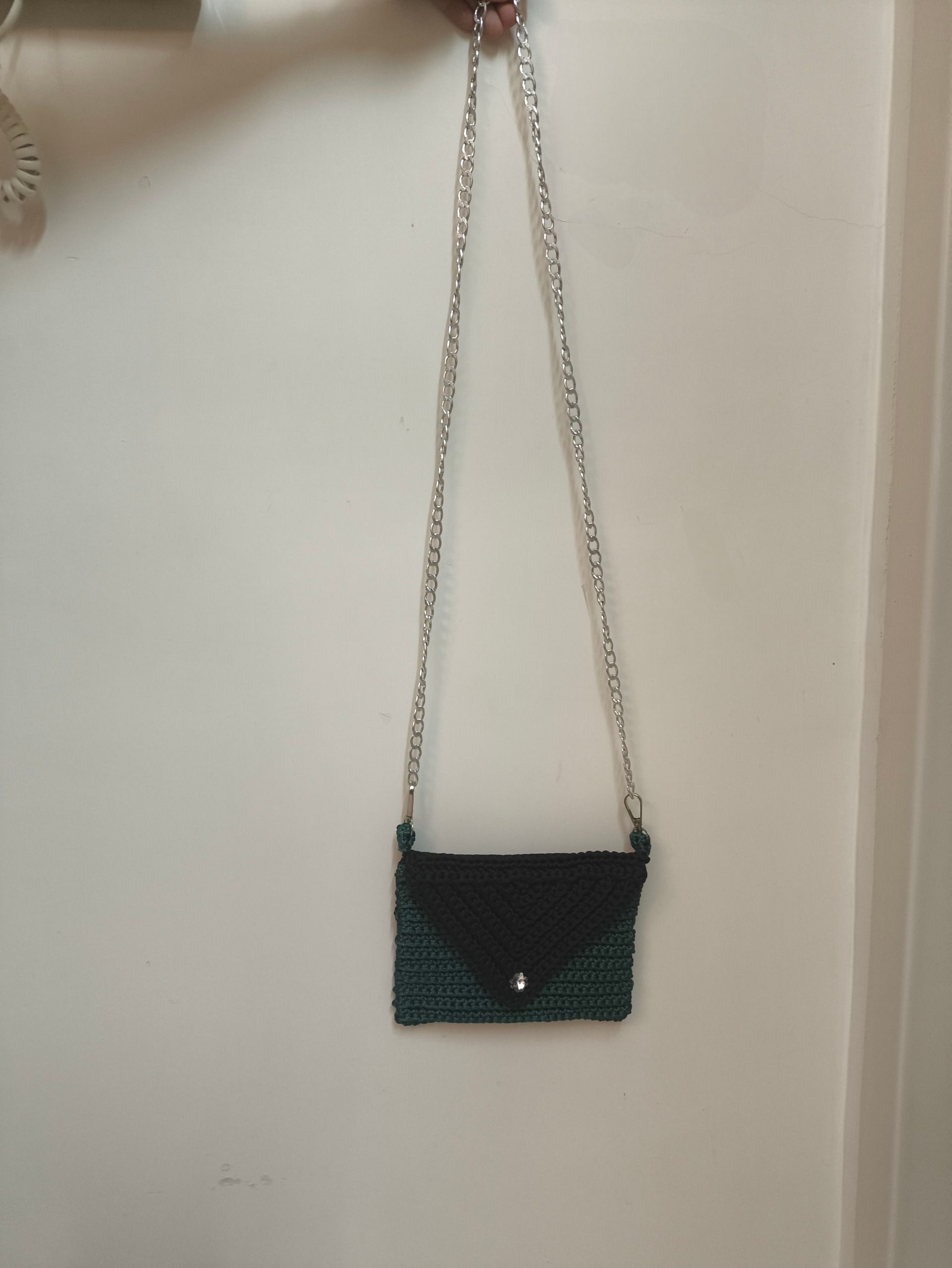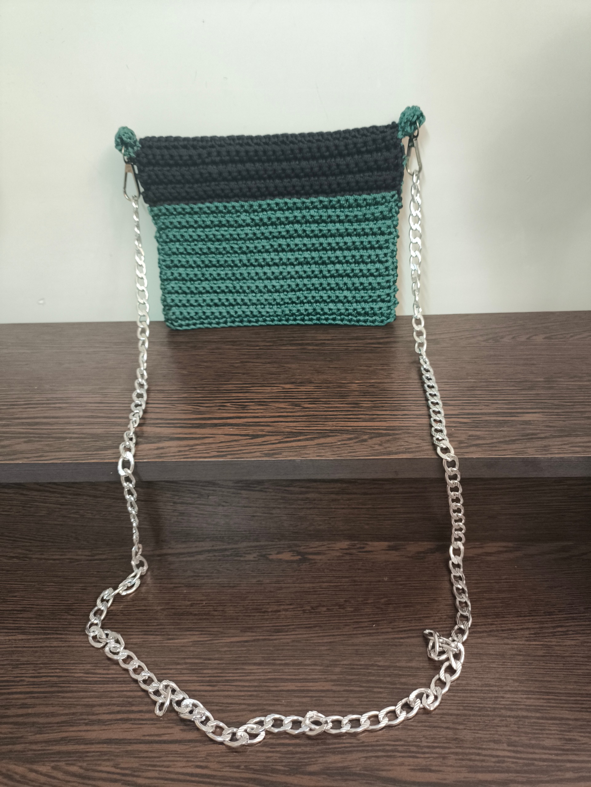 کیف مکرومه کتان دو سوزنه با بند زنجیری