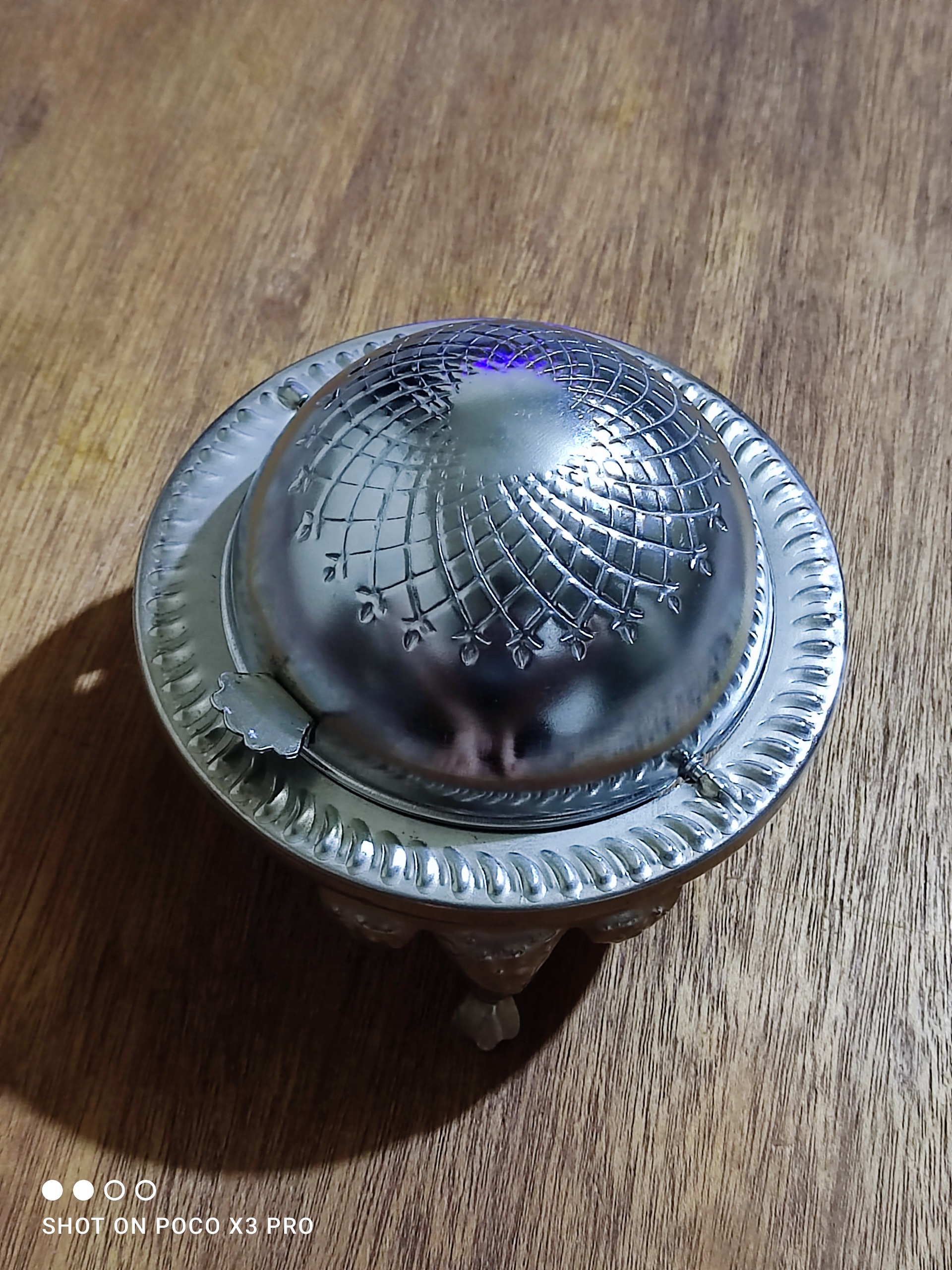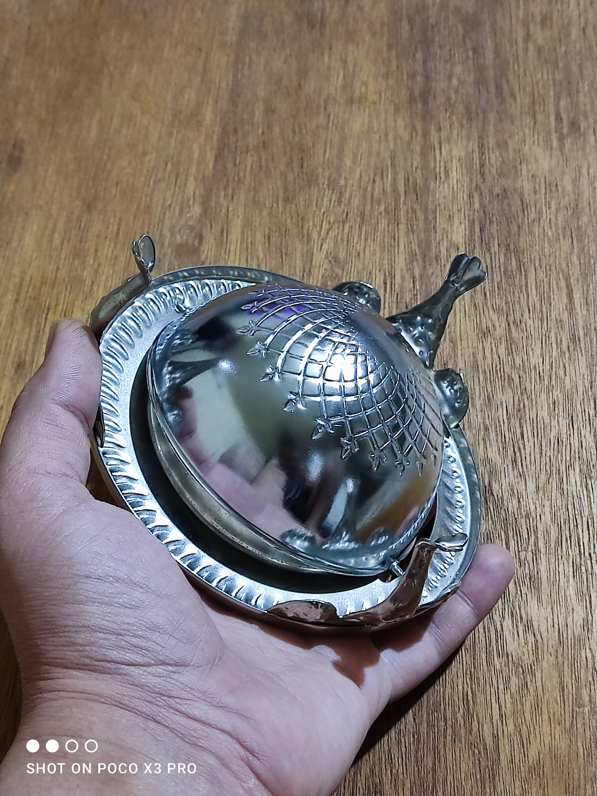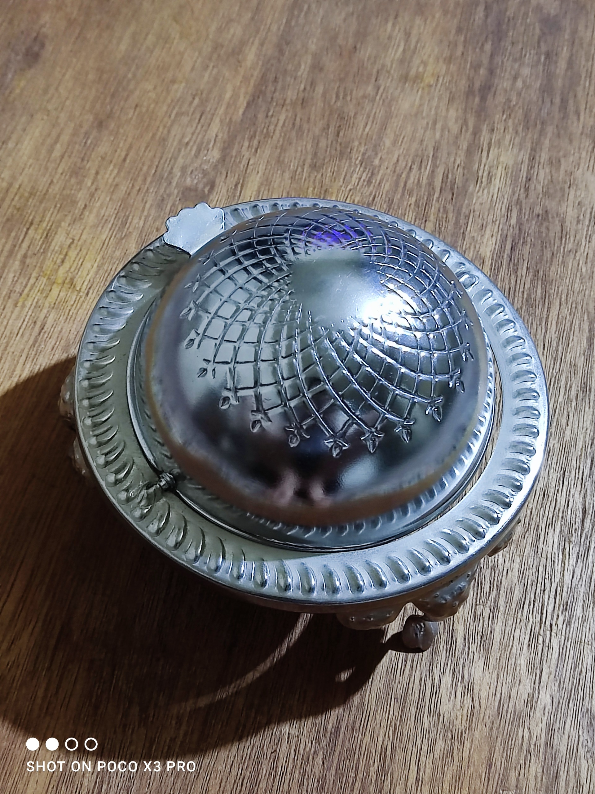 خاویارخوری قدیمی بسیار زیبا و محکم مطابق تصاویر آک آک استفاده نشده فلز بسیار محکم نقشدار و کلکسیونی جنس این خاویارخوری از فلزه