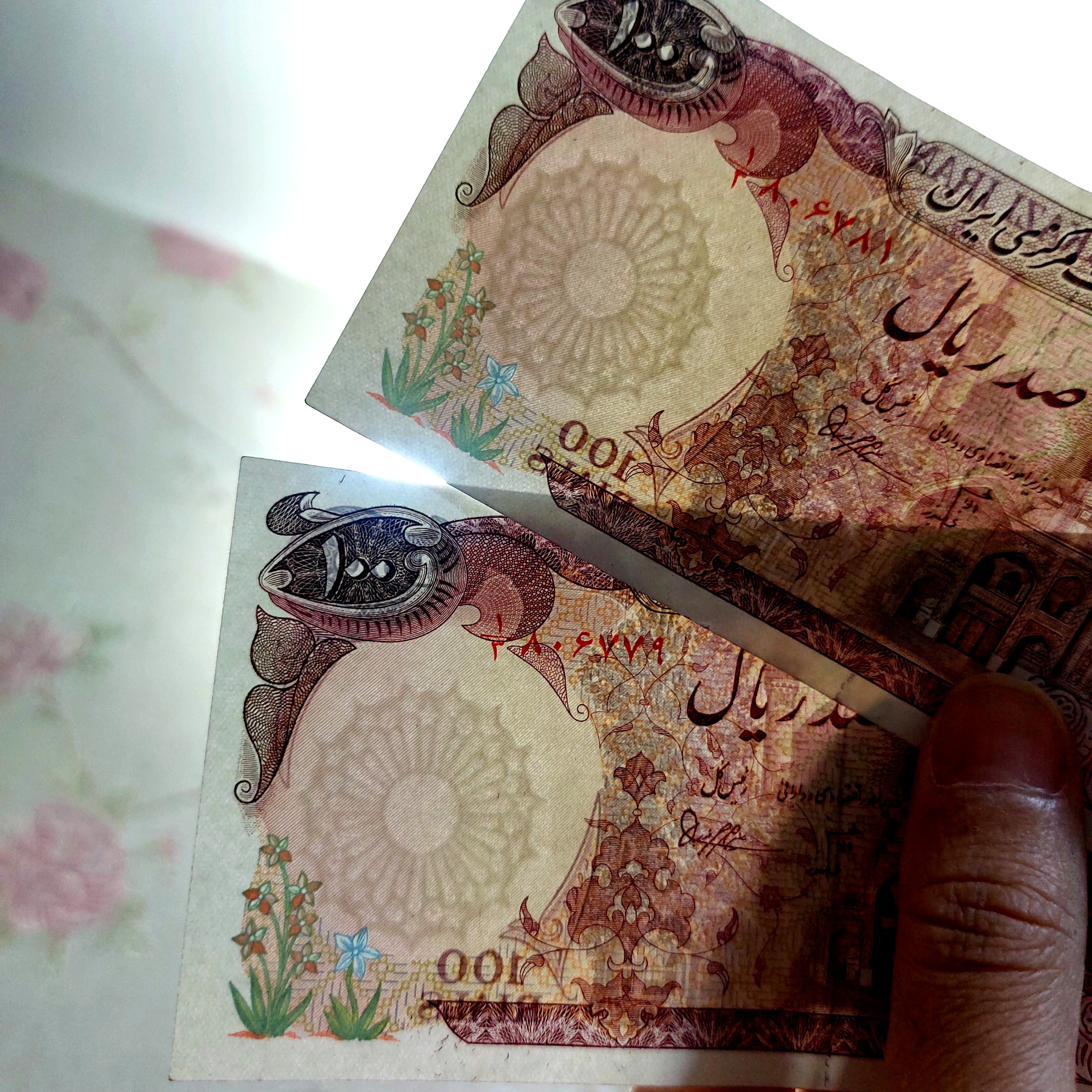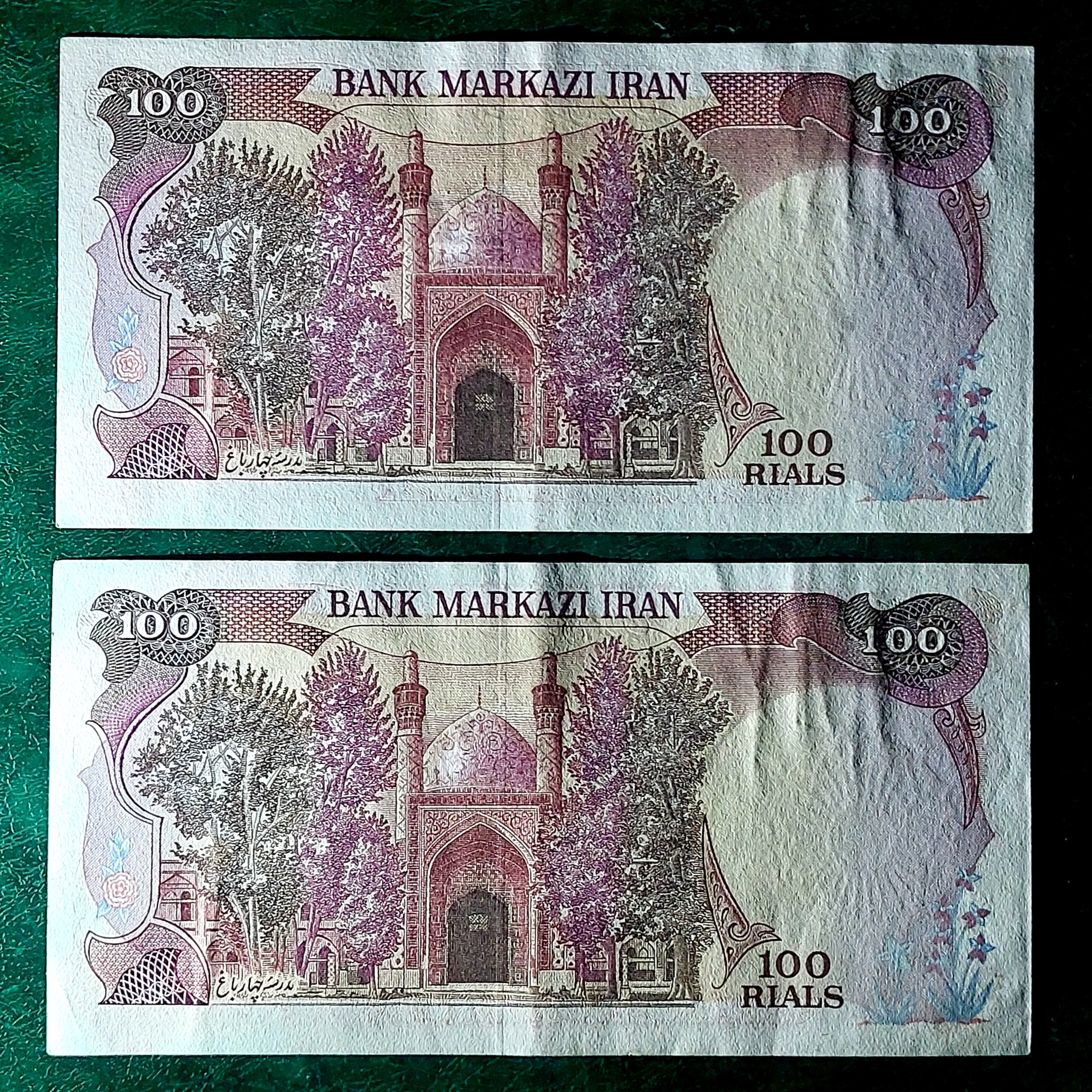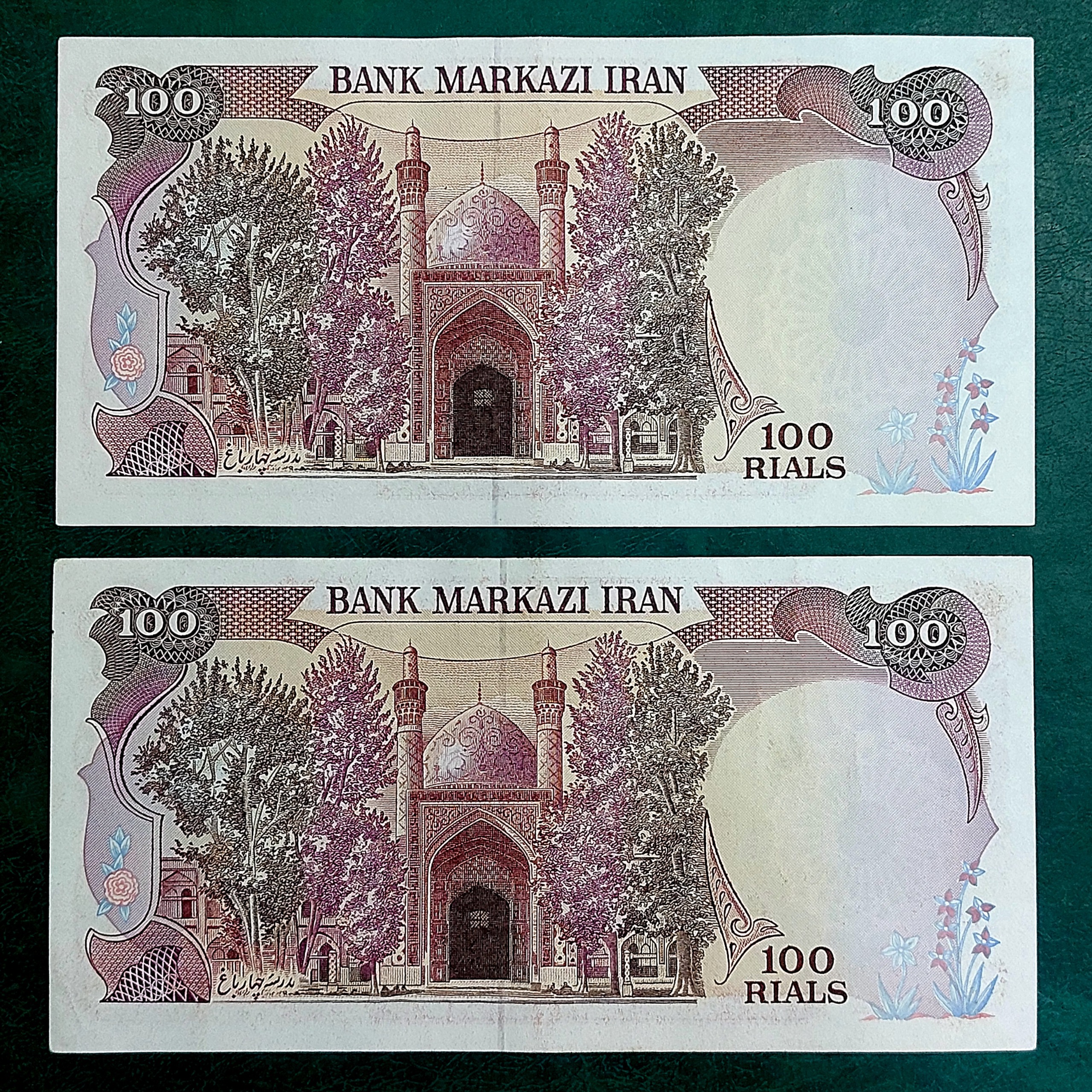 بنیصدر بیضی جفت بافاصله 100ریال چاپ انگلیس