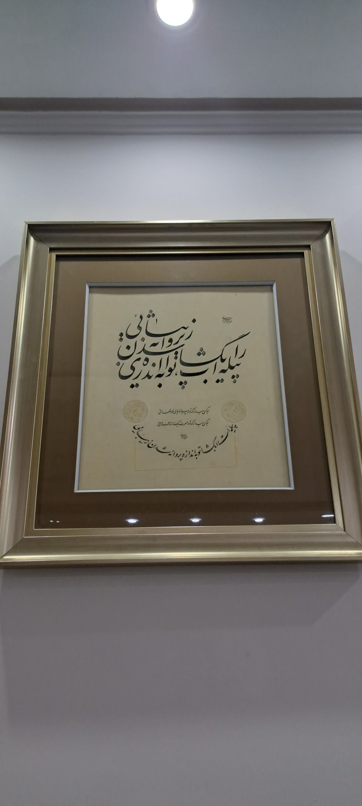 تابلو نستعلیق با قلم نی مرکب ضد اب اشمینگ آلمان و کاغذ دست ساز