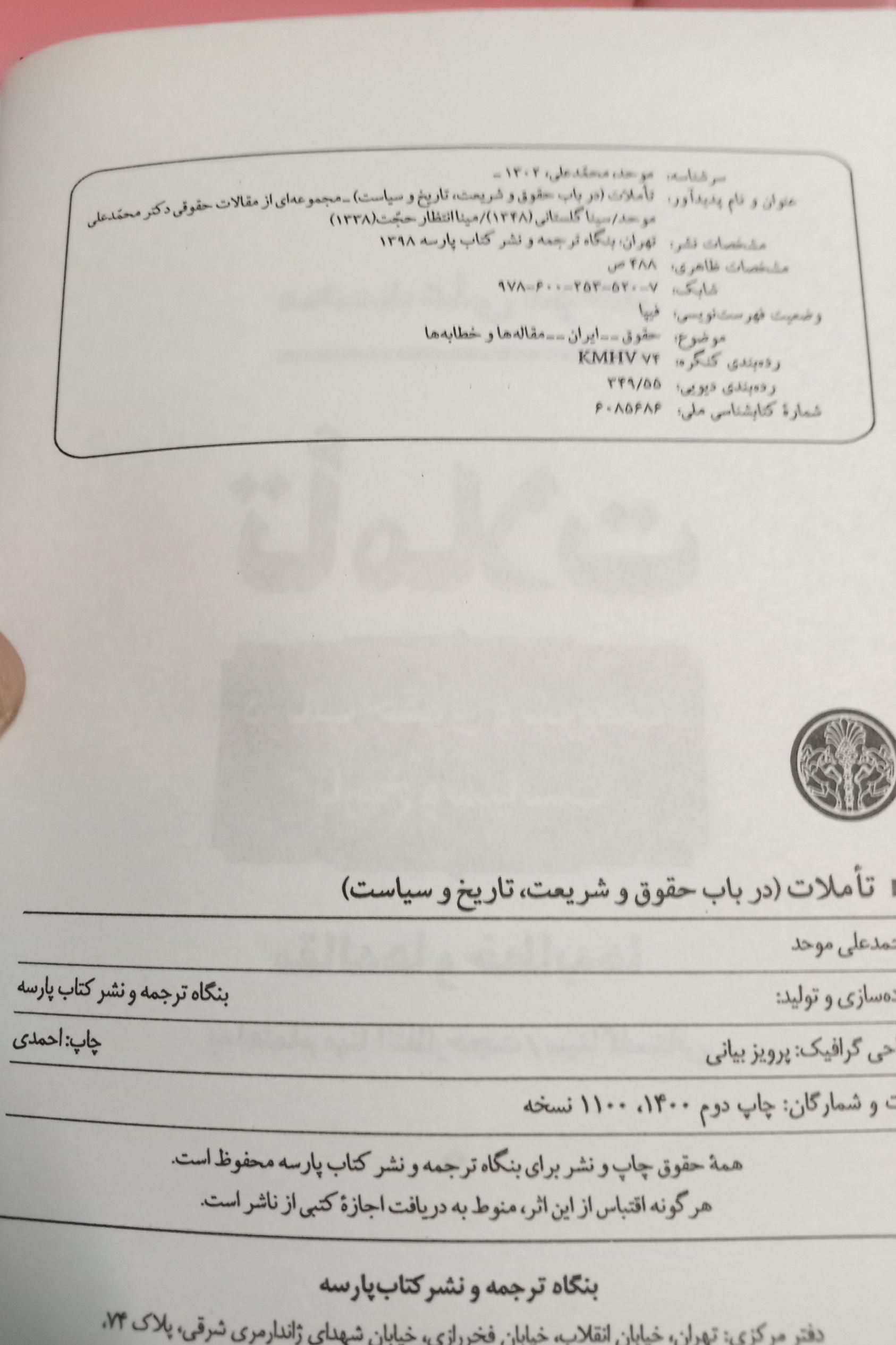 | نوع چاپ کتاب | چاپ اصل |